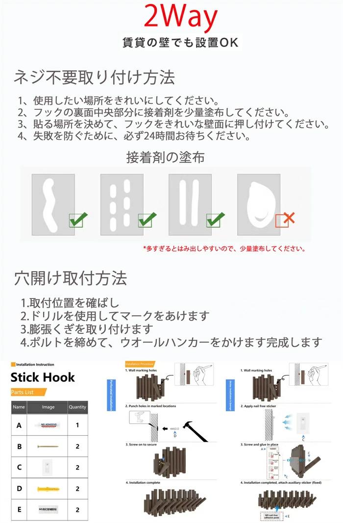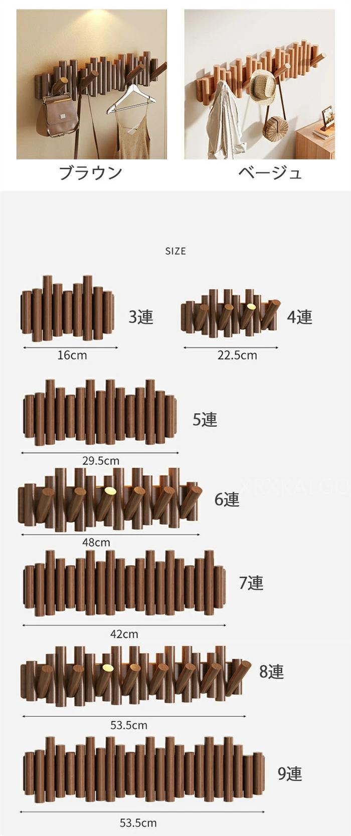 コート掛け ハンガーフック 壁掛けフッ ブラウン ベージュ 3連 5連 7連 9連