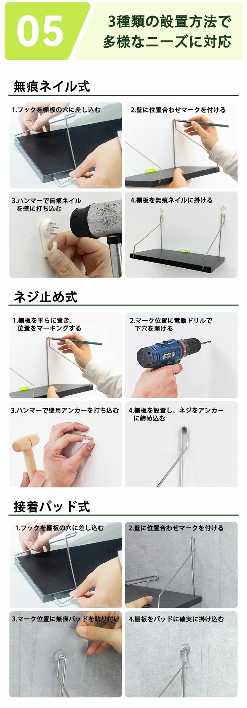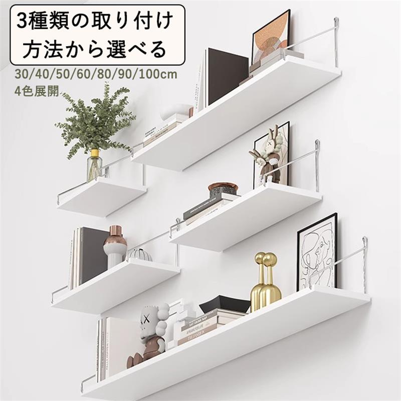 北欧 棚 穴あけない 壁 壁掛け 石膏 ホワイト ブラック 天然木色 30cm 40cm 50cm 60cm 80cm 90cm 100cm