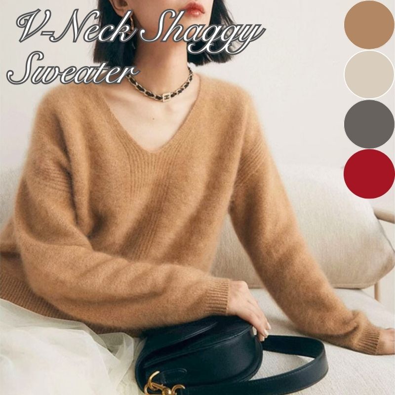 可愛い シャギー 秋 トップス シャギ トップス ニット セーター セーター 豊富 あんず色 ブラウン グレー レッド