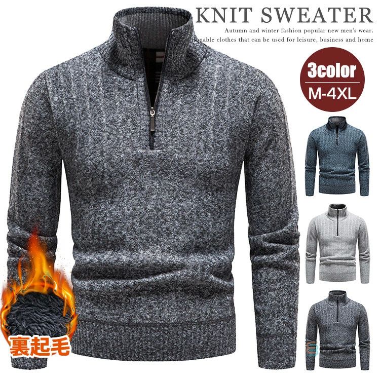 暖かい ハーフジップ ニット ニットセ トップス ニット セーター 豊富な品揃え ライトグレー ダークグレー サックスブルー M L XL 2XL 3XL