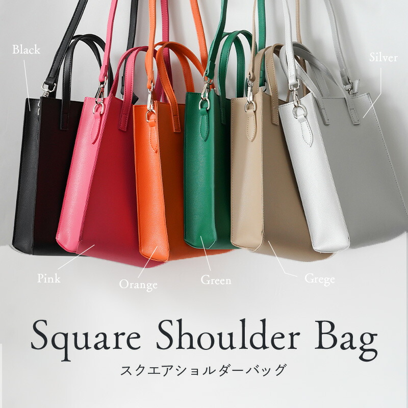 ショルダーバッグ レディース スクエア バッグ 小物 ブランド雑貨 新作 シルバー グレージュ オレンジ ピンク グリーン ブラック グレー ブラウン ブルーグレー