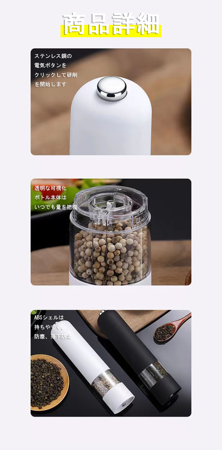 ペッパーミル 電動 ミル 胡椒 花椒 キッチン用品 食器 調理器具 通販 レッド ブラック ホワイト