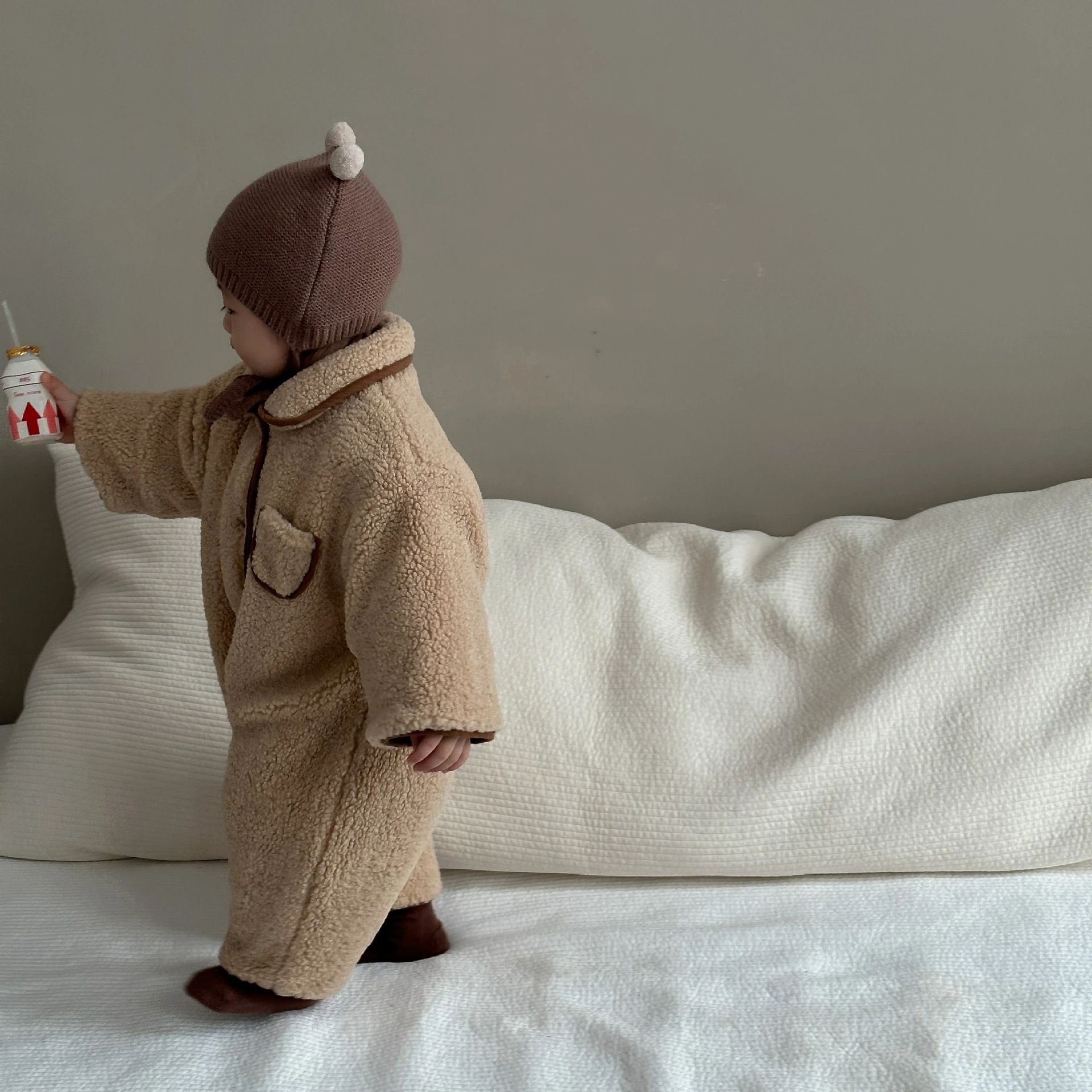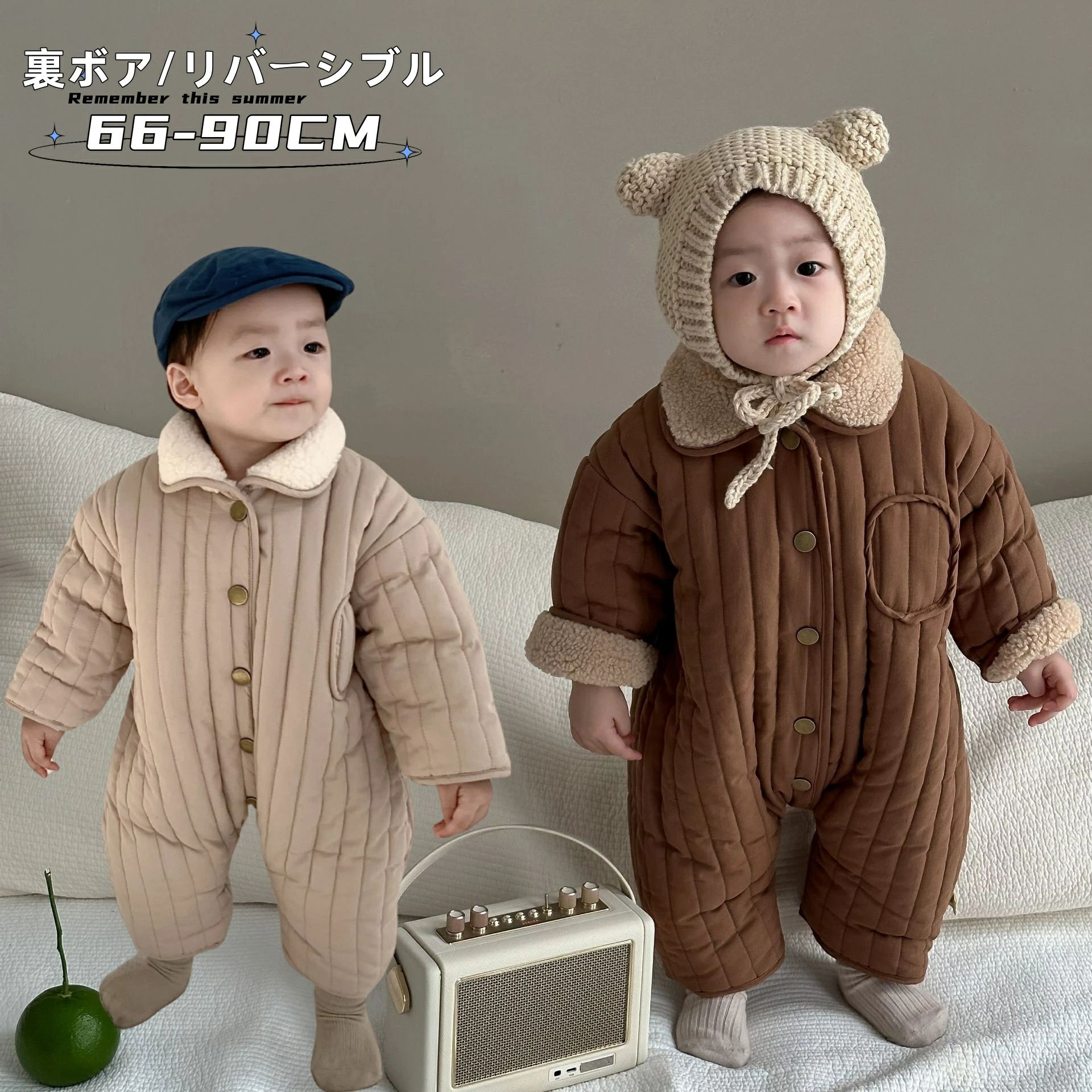 ロンパース 男の子 裏ボア リバーシブ ベビー ベビー服 ファッション カバーオール ロンパース 通販 ブラウン ベージュ 80cm 90cm
