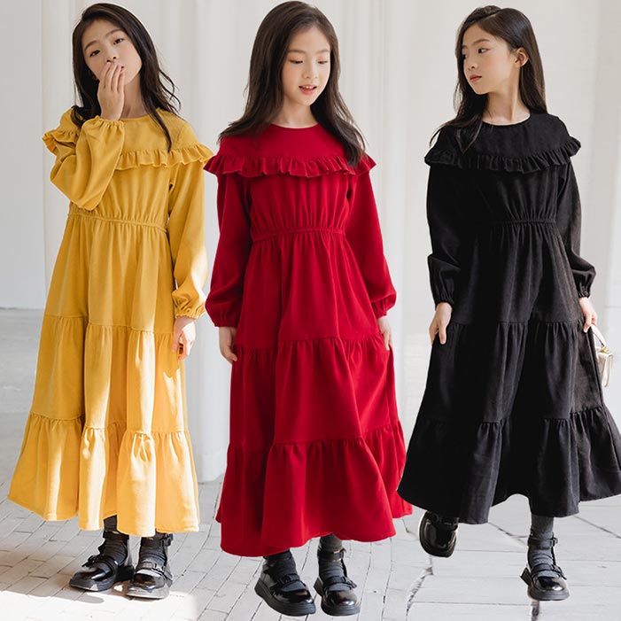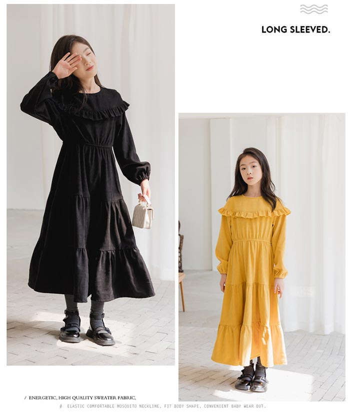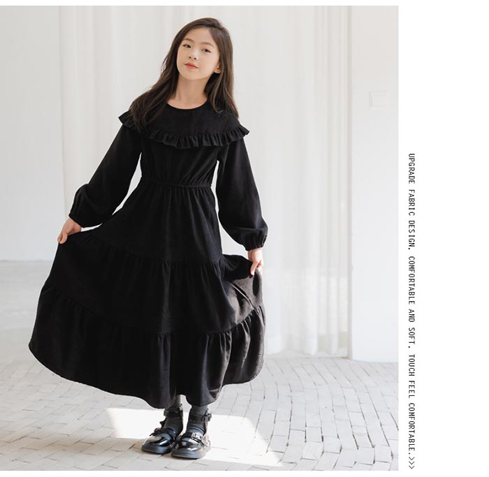 秋冬 可愛い フレアワンピース 長袖 キッズ ベビー マタニティ 豊富 ブラック レッド イエロー 120cm 130cm 140cm 150cm 160cm 165cm