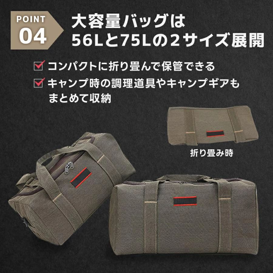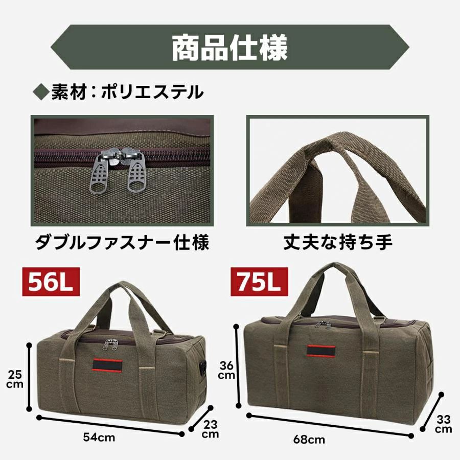 キャンプ 収納バッグ 大容量 バッグ スポーツ アウトドア 続々入荷中 オリーブ ブラック ブラウン 75L 56L