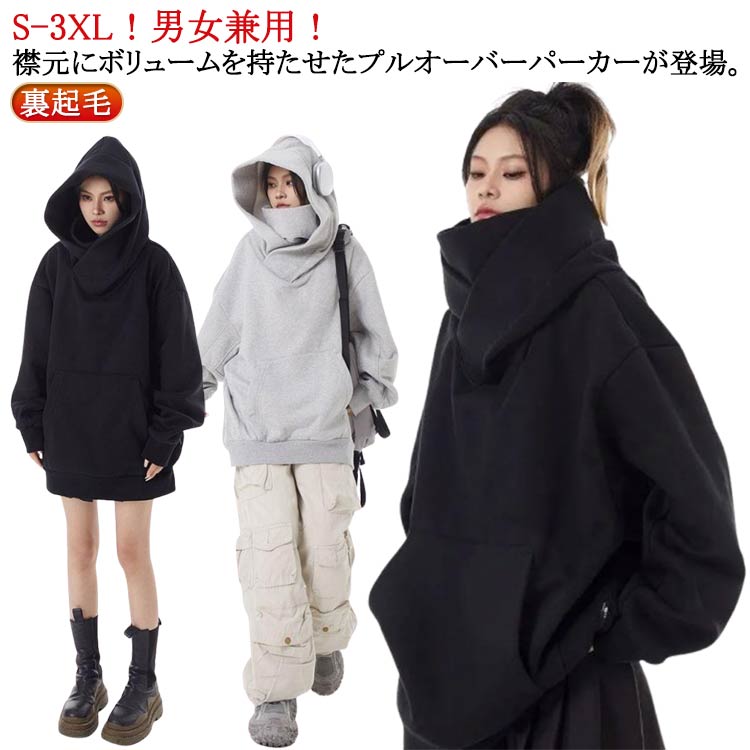 男女兼用 ボリュームネックパーカー レ トップス パーカー 早い者勝ち ブラック ライトグレー S M L XL 2XL 3XL