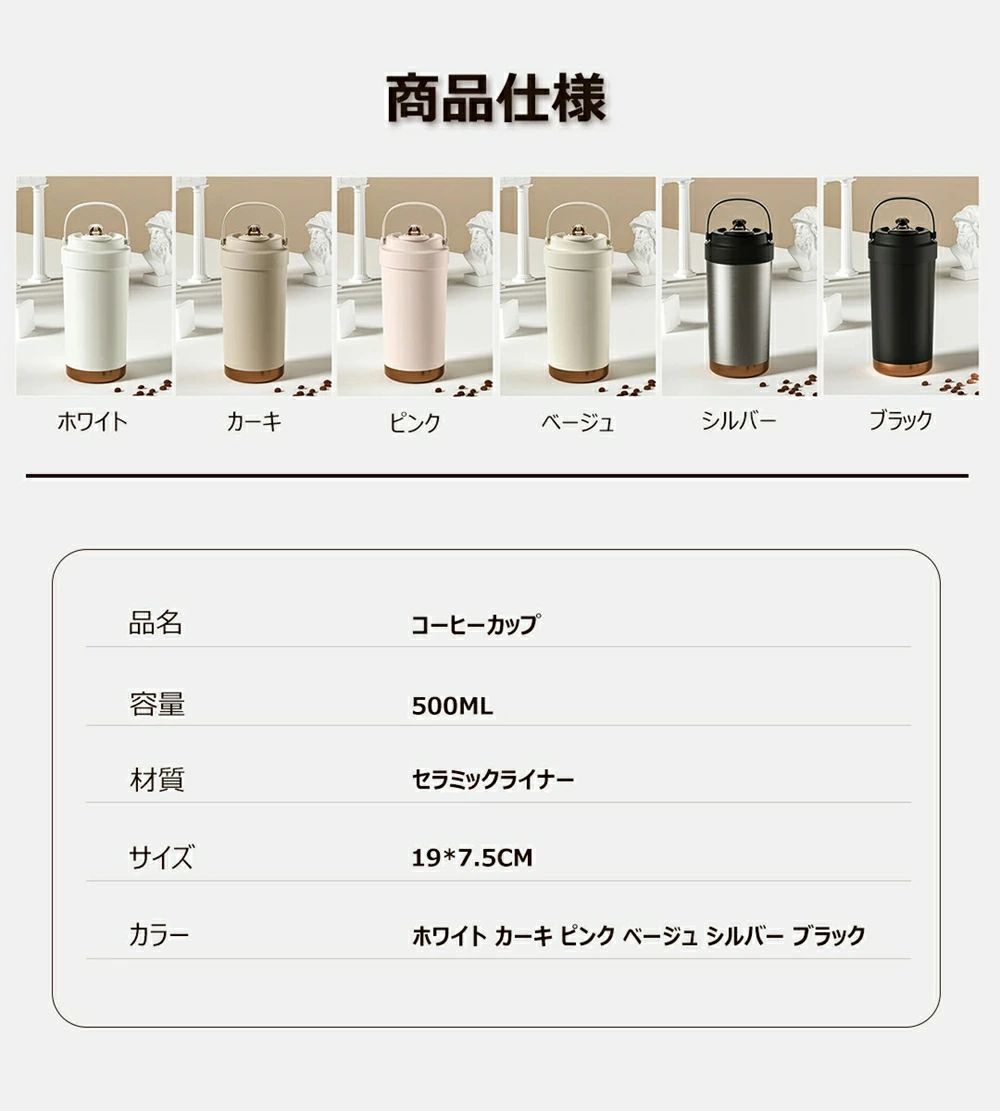タンブラー セラミックタンブラー 75 キッチン用品 食器 調理器具 早い者勝ち ホワイト カーキ ピンク ベージュ シルバー ブラック 本製品専用【予備のストロー】 500ml 750ml