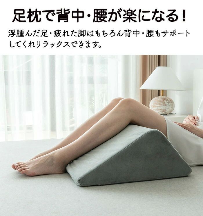 商品名:足枕 足まくら 三角 背もたれ 疲れ解消 三角枕 クッション 膝枕 腰枕 ひざ枕 脚枕 マッサージ まくら 低反発 足 乗せ 足置き台 フットレスト 高さ調整 クッション 足枕ピロー レッグクッション フットピロー 横向き寝 ふくらはぎ 父の日 敬老の日 介護 高齢者 妊婦 サポート