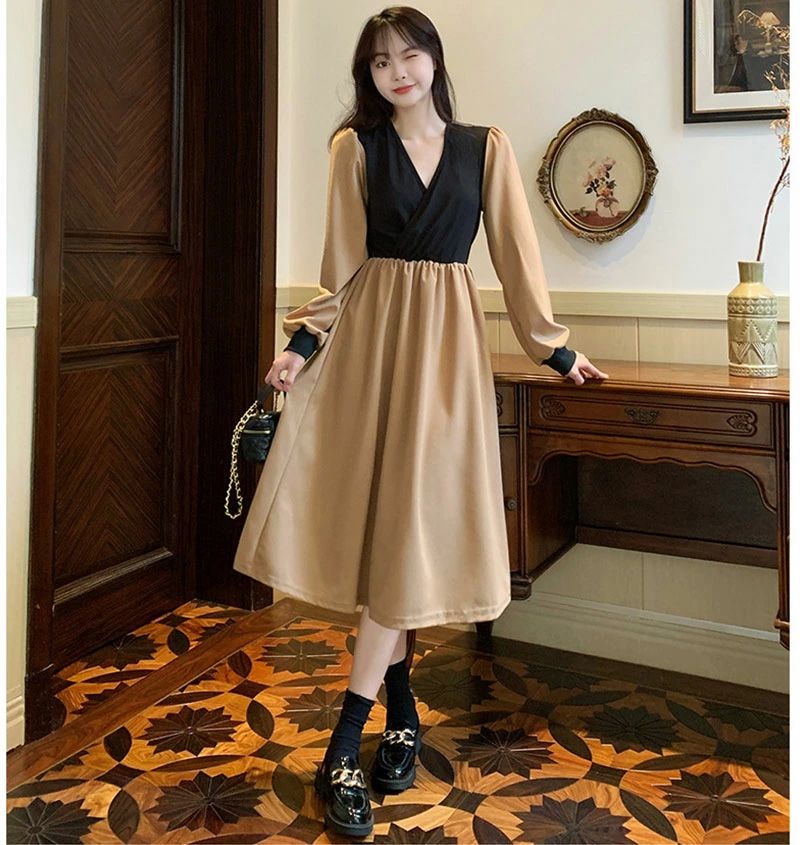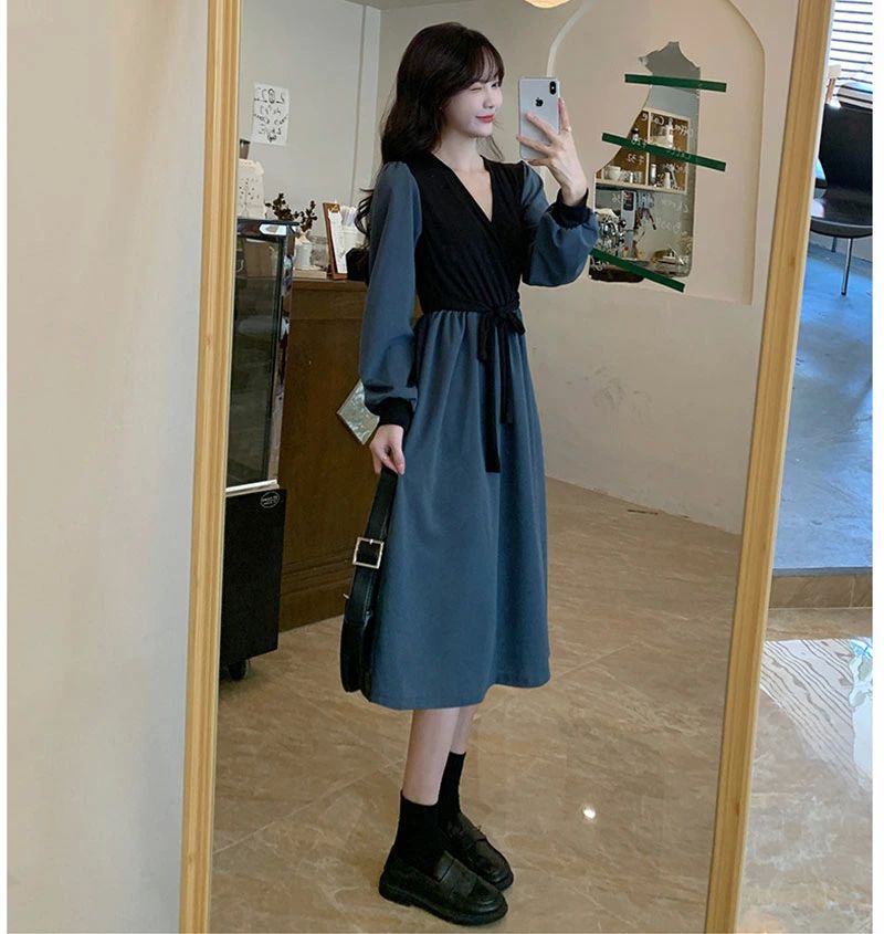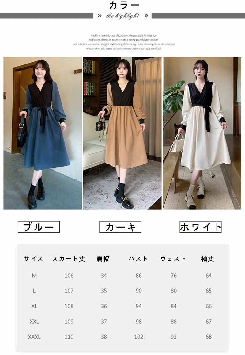 長袖 Vネック エレガント 淑女 ロン レディースファッション 続々登場 ブルー カーキ ホワイト M L XL 2XL 3XL