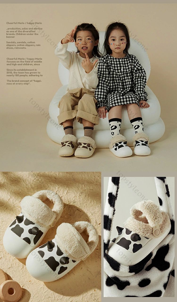 男の 滑り止め 暖かい 軽量 防水 衝突防止 クマちゃん 子供用 可愛い乳牛 子供用サンダル 裏ボア キッズ サンダル ボアスリッパ