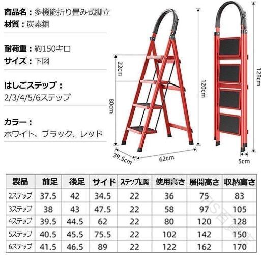 2024新発売 折りたたみ 脚立 はし レッド ブラック ホワイト グレー ピンク ブルー グリーン 2ステップ(赤のみ) 3ステップ(赤のみ) 4ステップ 5ステップ 6ステップ