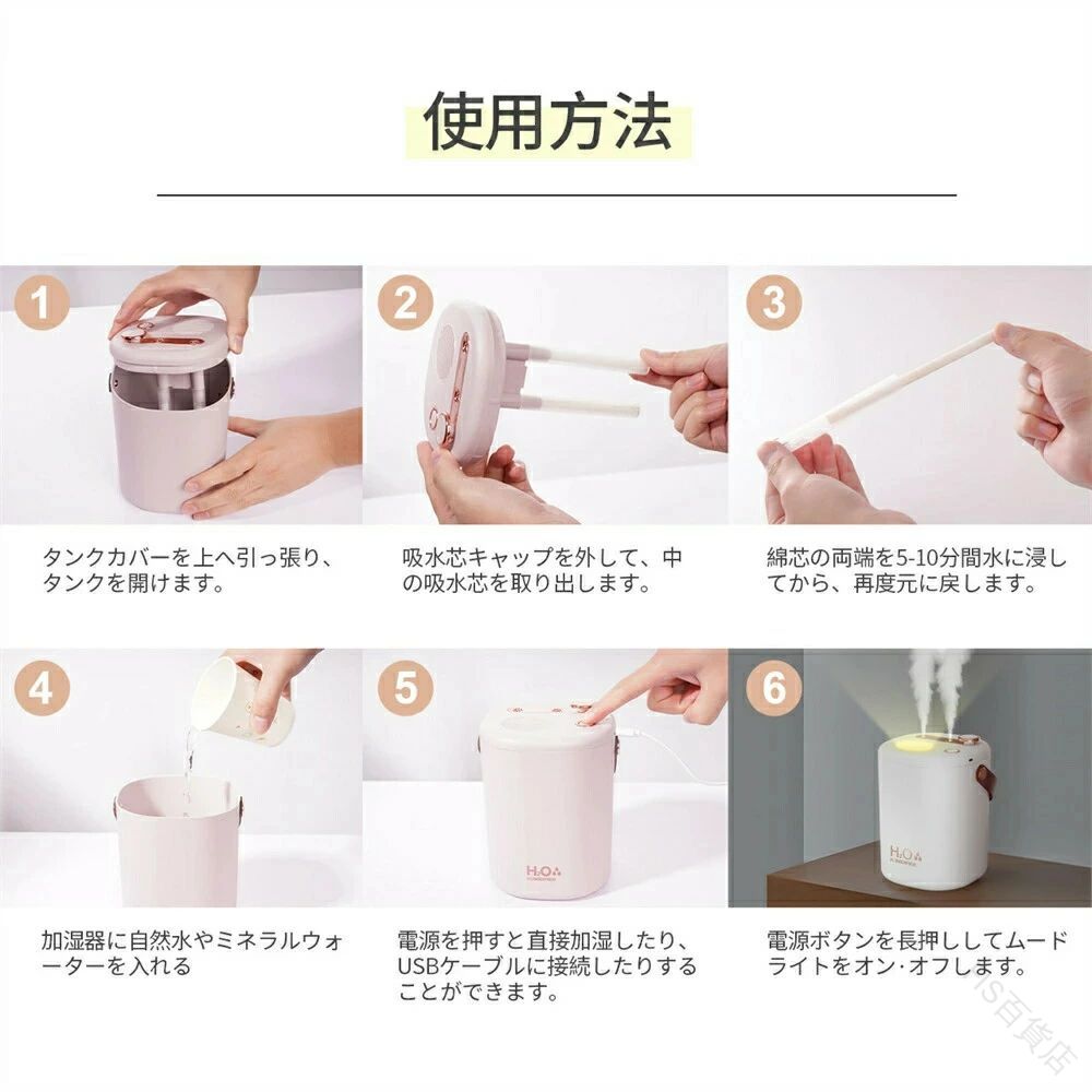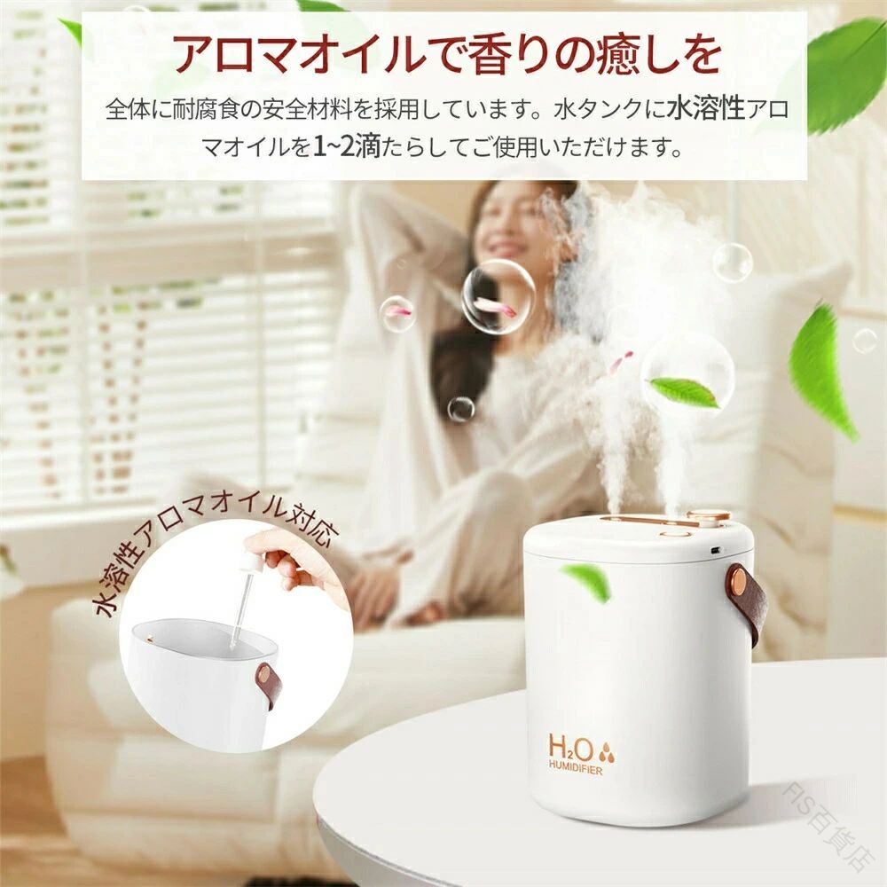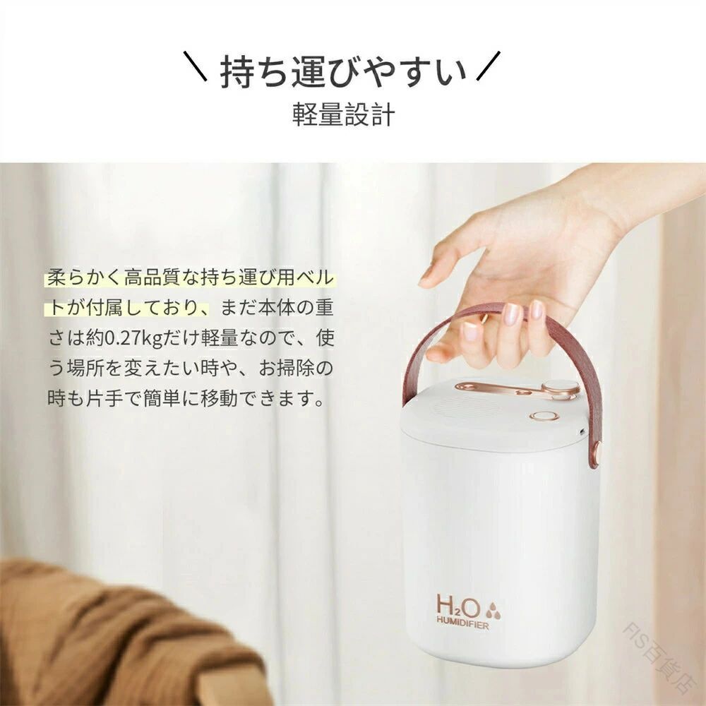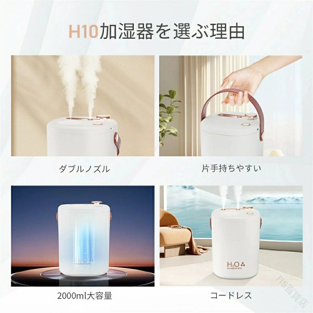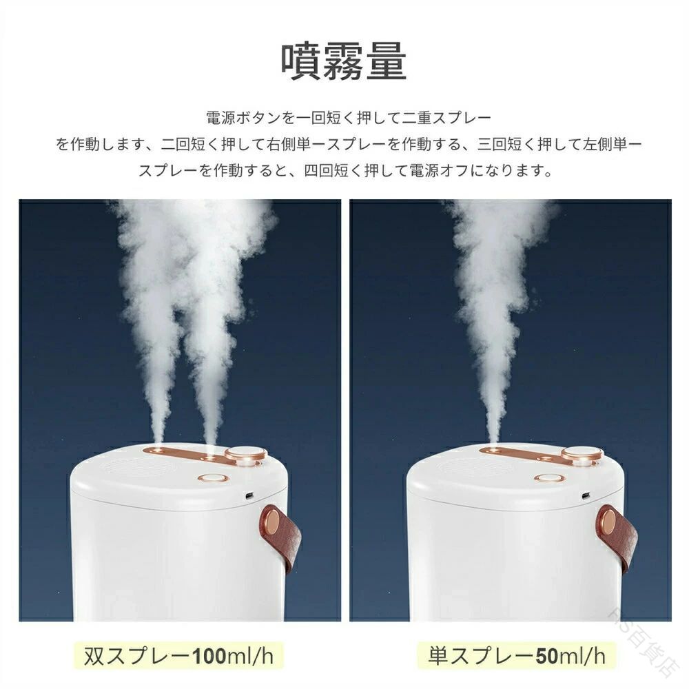 手入れ不要 加湿器 卓上 コンパクト おしゃれ 大容量2L USB充電式 コードレス 上部給水式 空焚き防止 次亜塩素酸水対応 省エネ ダブルノズル オフィス リビング 部屋 充電式 アロマ 除 車用