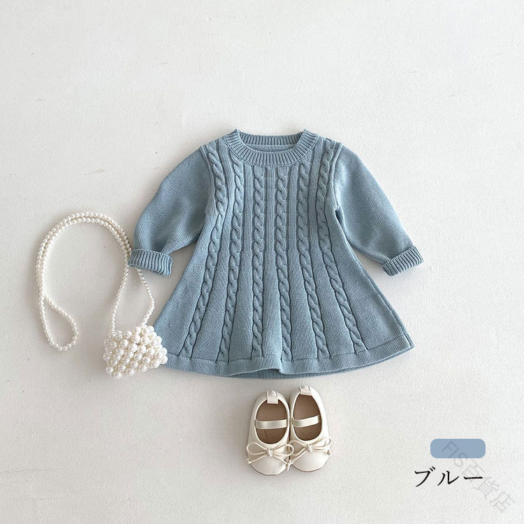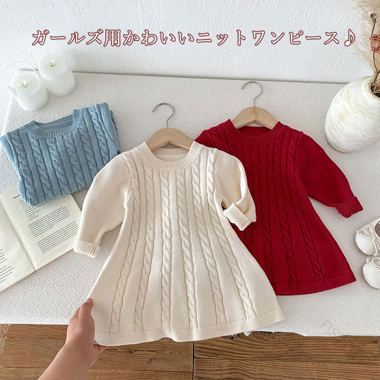 子供服 ニットワンピース ケーブルニッ キッズ ベビー マタニティ 豊富な品揃え オフホワイト ブルー ワインレッド 80cm 90cm 100cm 110cm 120cm 130cm