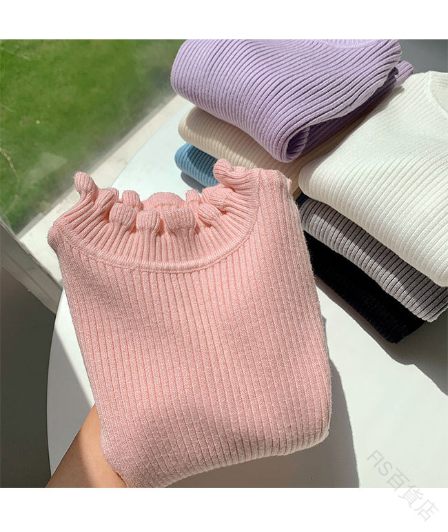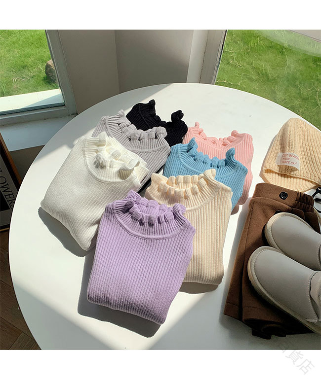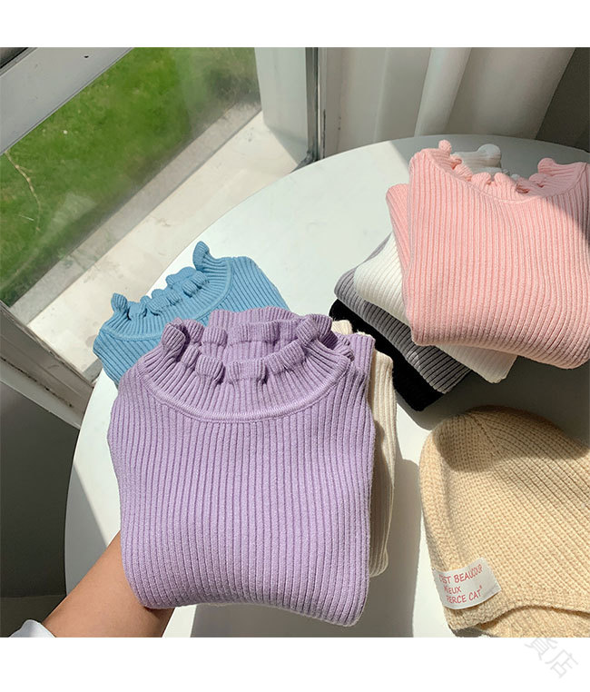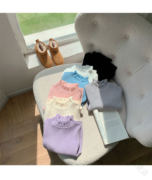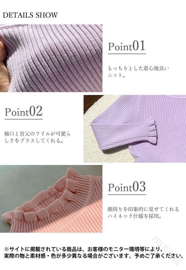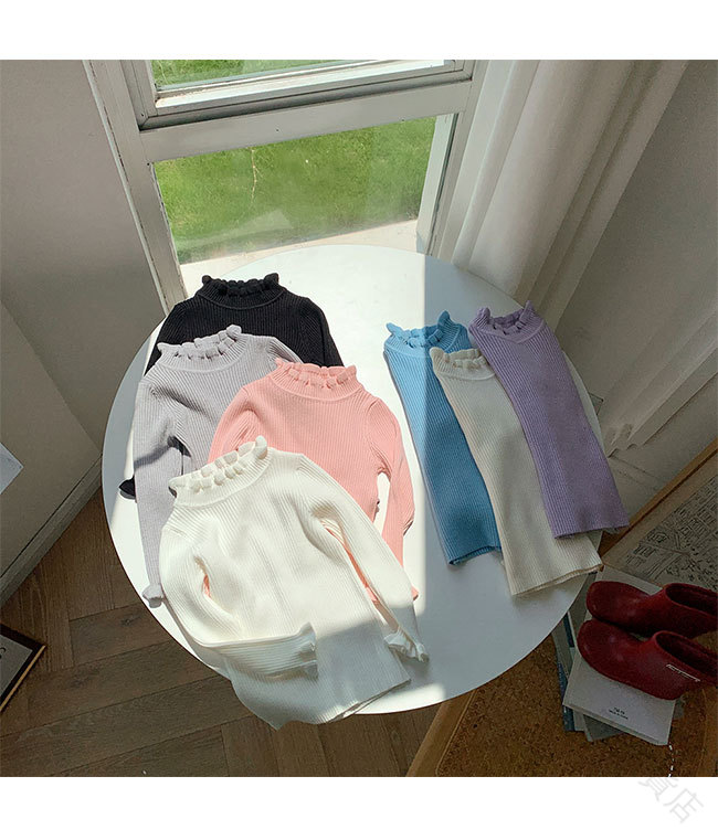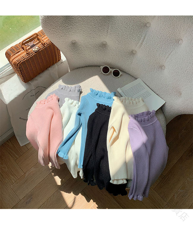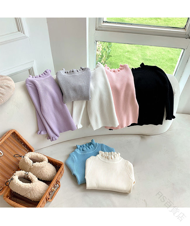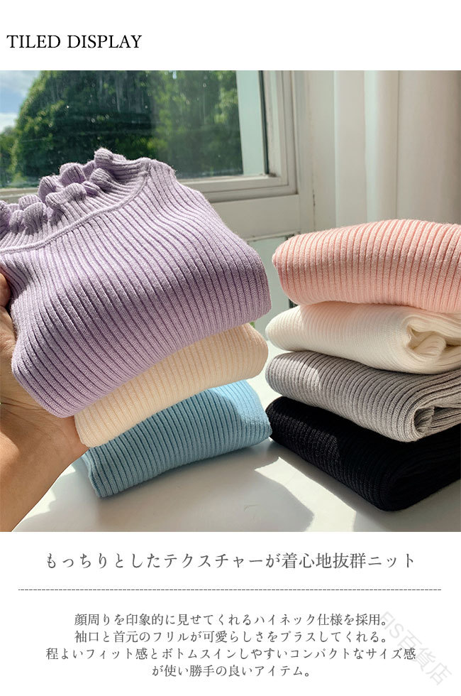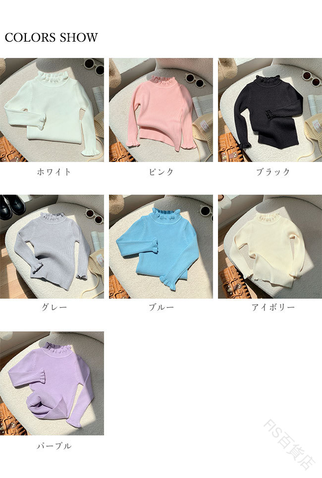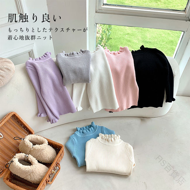 トップス キッズ 子供服 こども服 女の子 ニット 袖と首元フリル 長袖 ハイネック 伸縮性 着心地良い カジュアル おしゃれ 着やすい レイヤード インナー ロングシーズン 通園 通学 カラバリ豊富