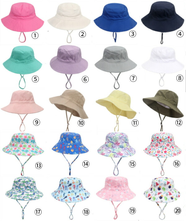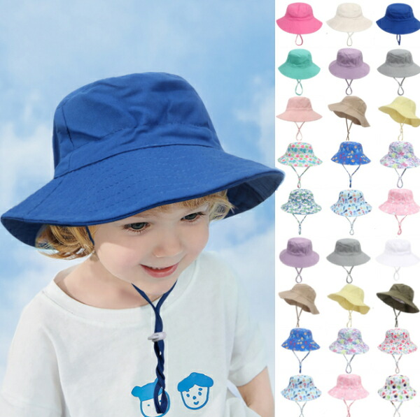 在庫品頭周り44-54cm 全20色 3サイズ日よけ キッズ帽子ベビー帽子 夏用ベビー赤ちゃん用ハットuvカット帽子紐付き ツバ広夏プール紫外線対策日よけ海子供女の子男の子折り畳み保育園 サンハット