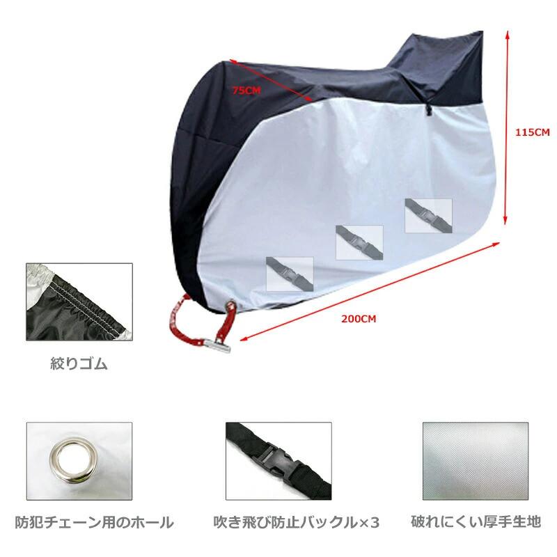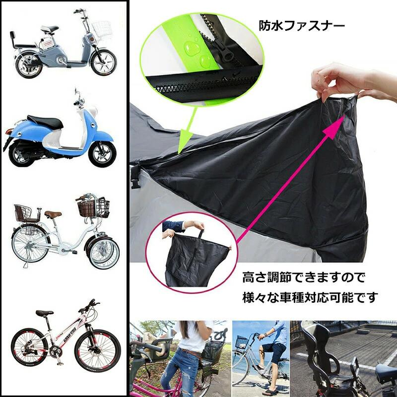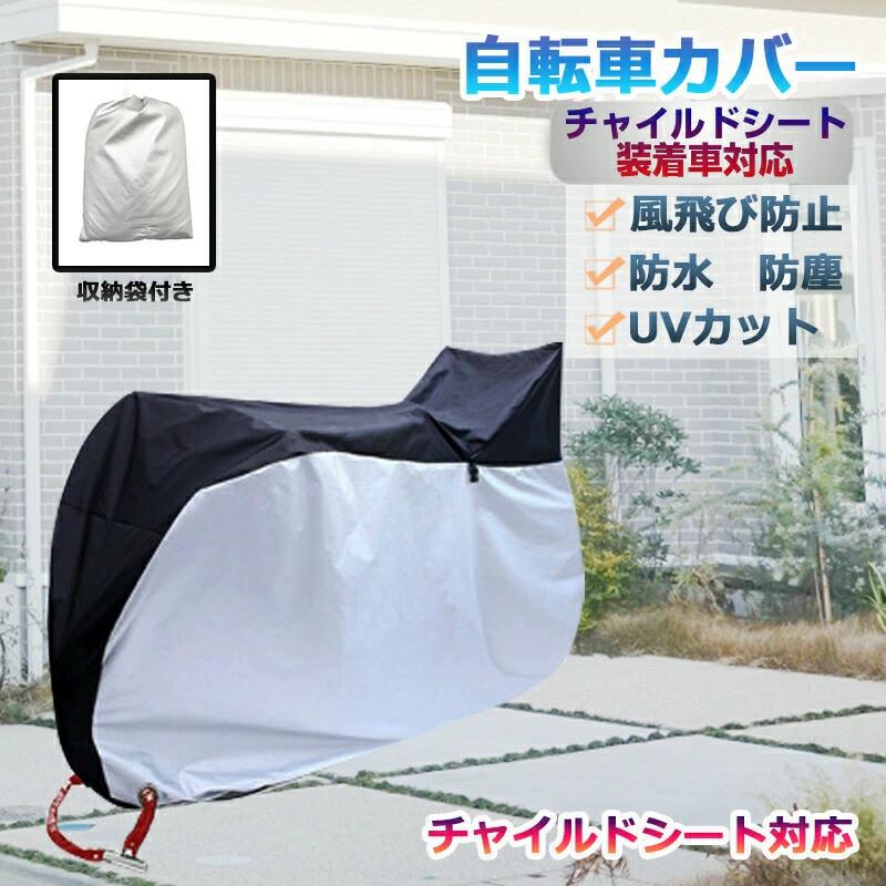自転車カバー 防水 子供乗せ 飛ばない ブラック×シルバー ブラック