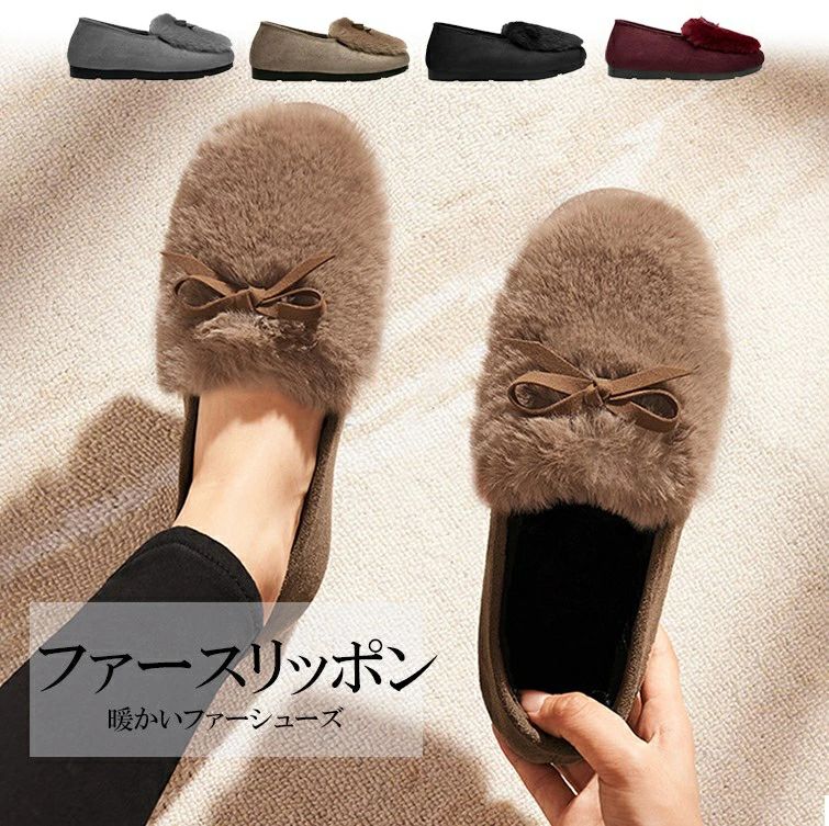 ふわっふわファーがあったかい 4色展開 レディース靴 モカシン 早い者勝ち ブラック グレー ブラウン ワインレッド 35(22.5cm) 36(23.0cm) 37(23.5cm) 38(24.0cm) 39(24.5cm) 40(25.0cm) 41(25.5cm)