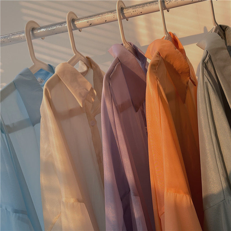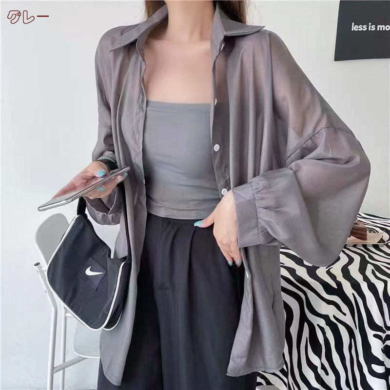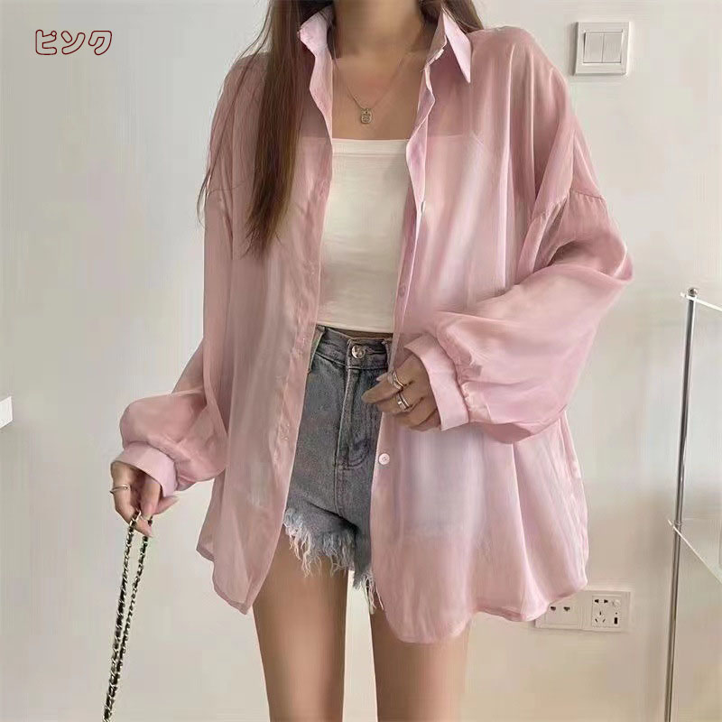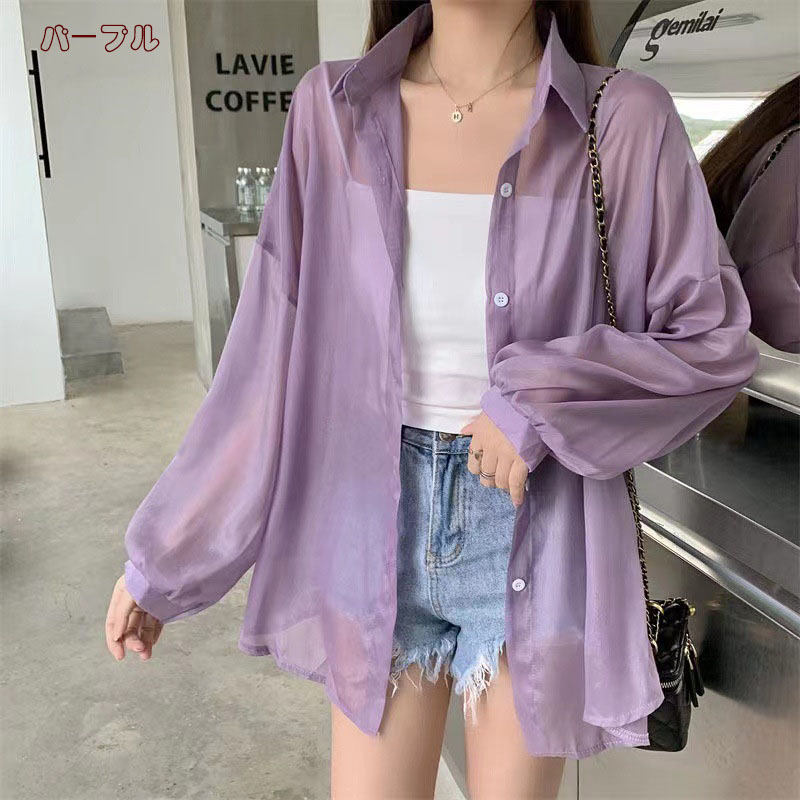 シアー ブラウス シャツ 長袖 シース レディースファッション 超目玉商品 ベージュ ライトパープル グリーン ブルー グレー ブラック オレンジ ホワイト ピンク イエロー パープル