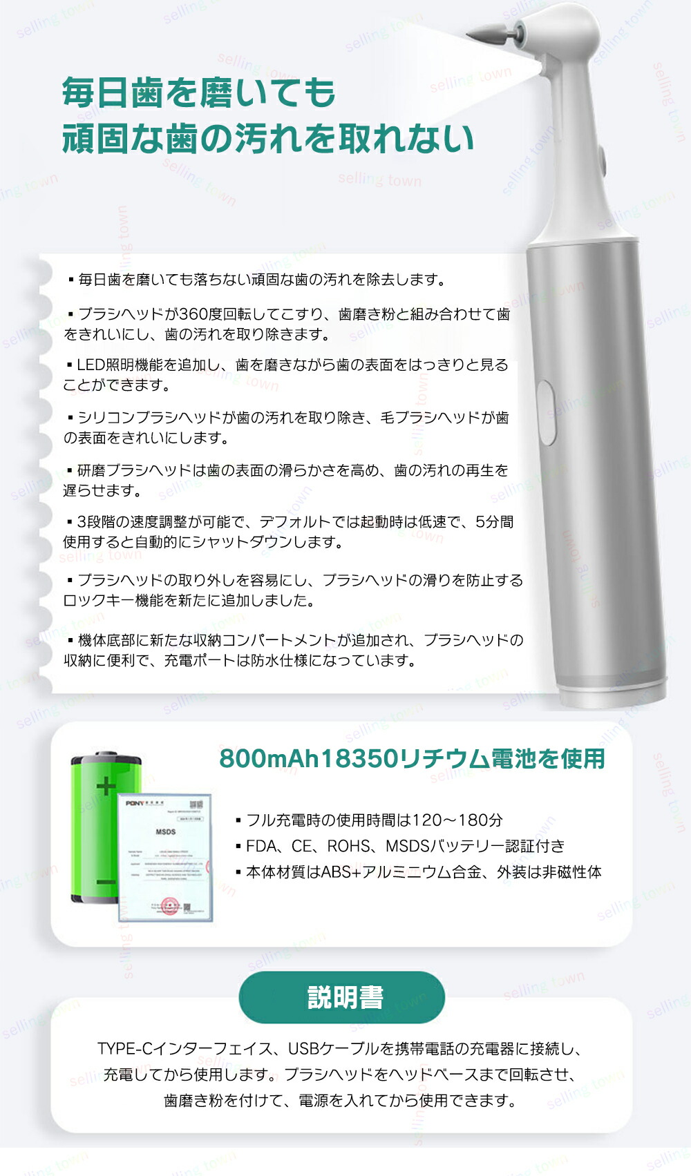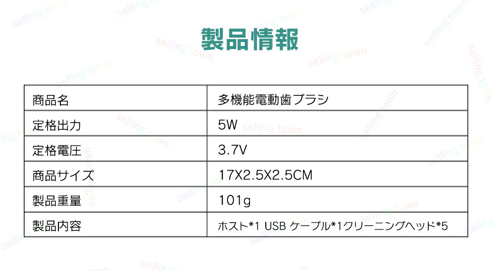 電動歯ブラシ 歯磨き器 5つの研磨ヘッ