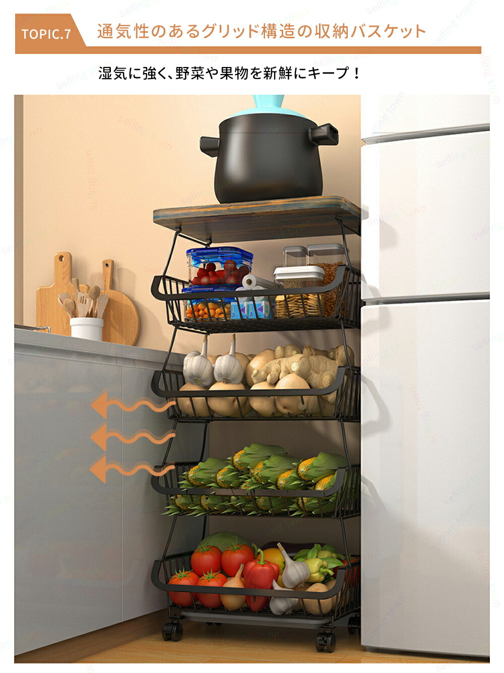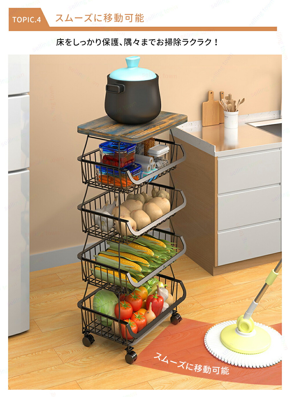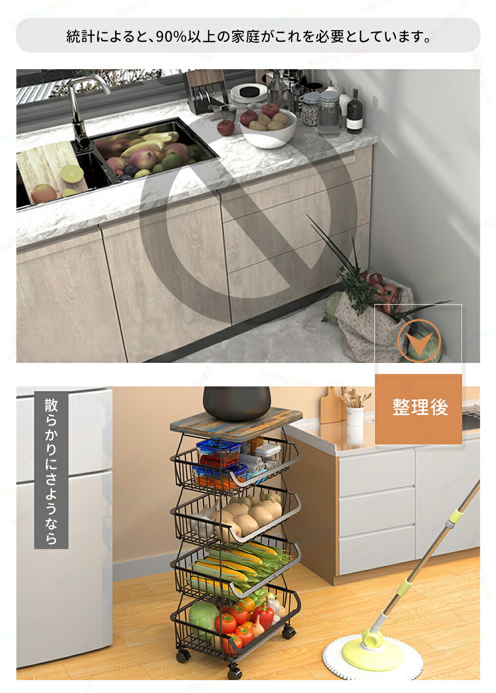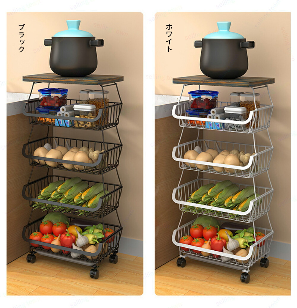キッチンワゴン キャスター付き ラック 2層 3層 4層 5層 6層 ホワイト ブラック
