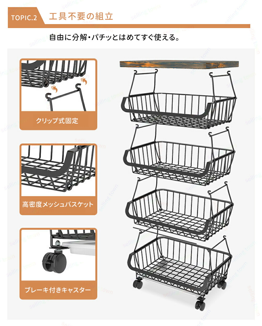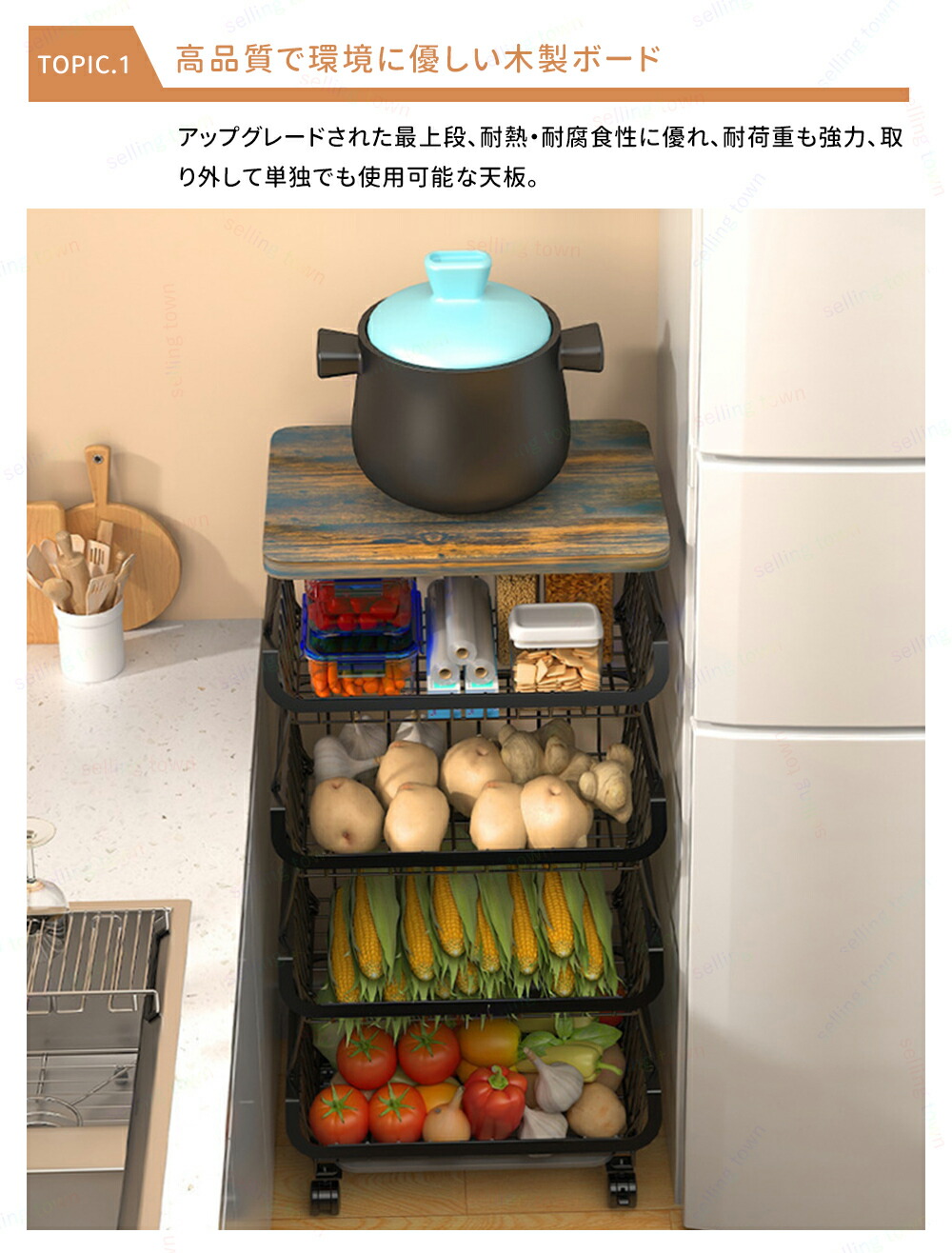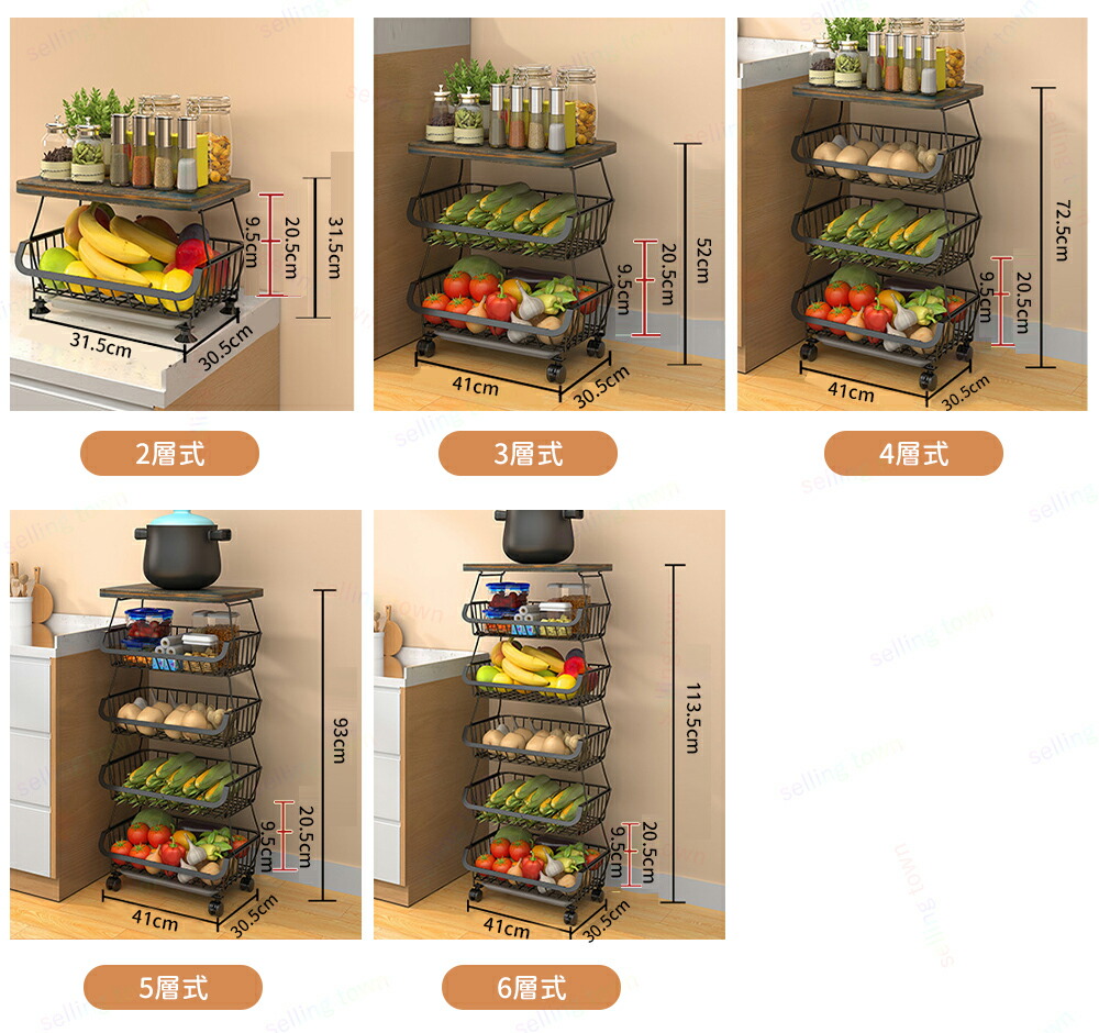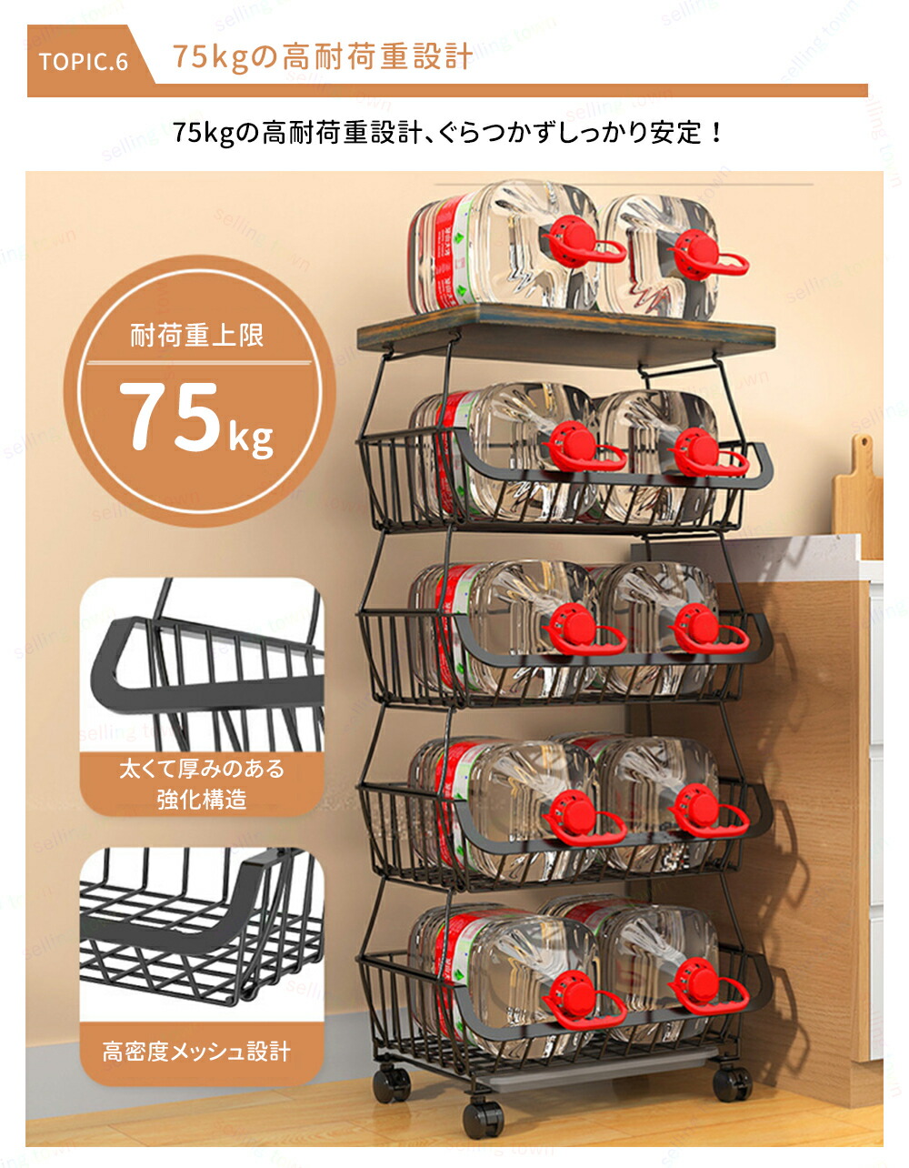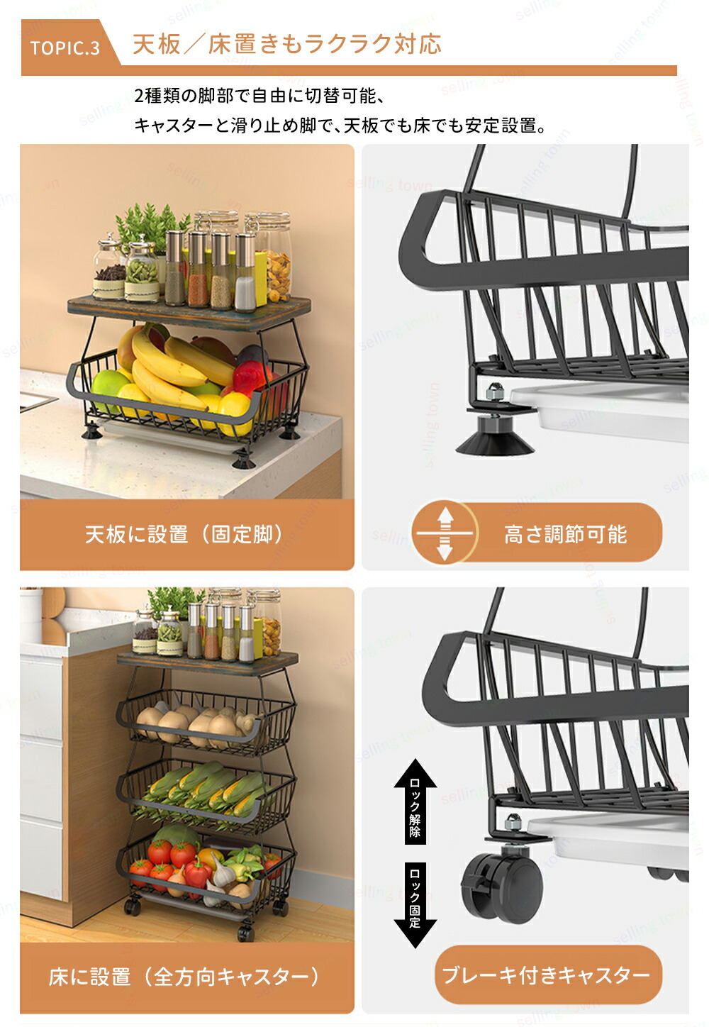 キッチンワゴン キャスター付き ラック 2層 3層 4層 5層 6層 ホワイト ブラック