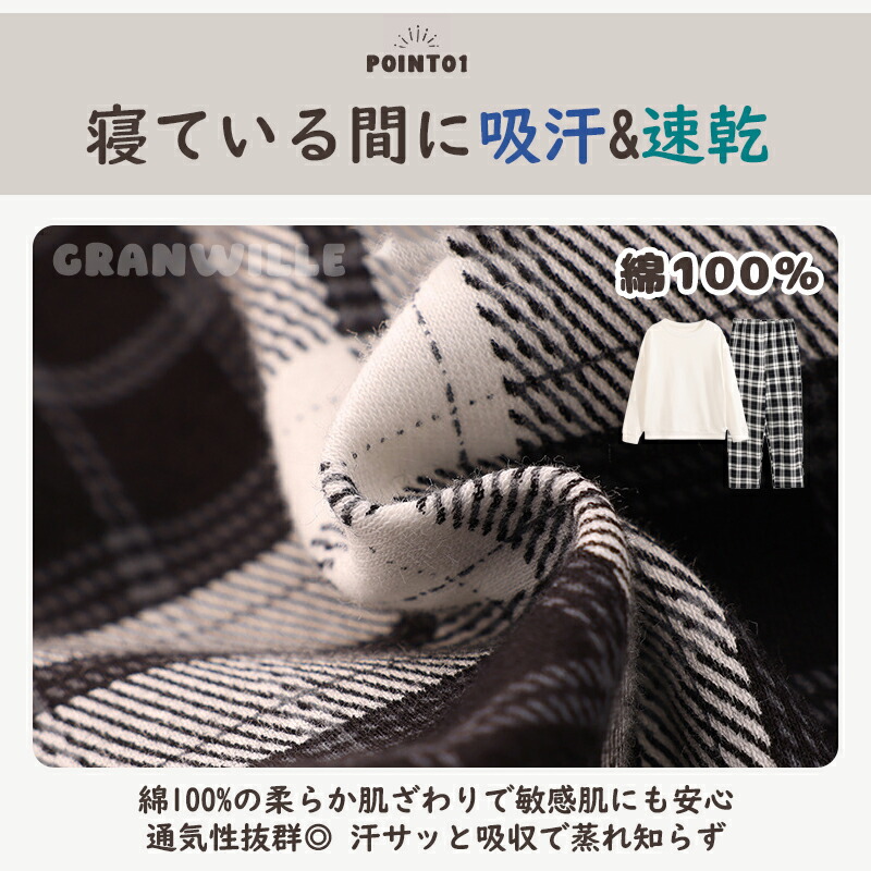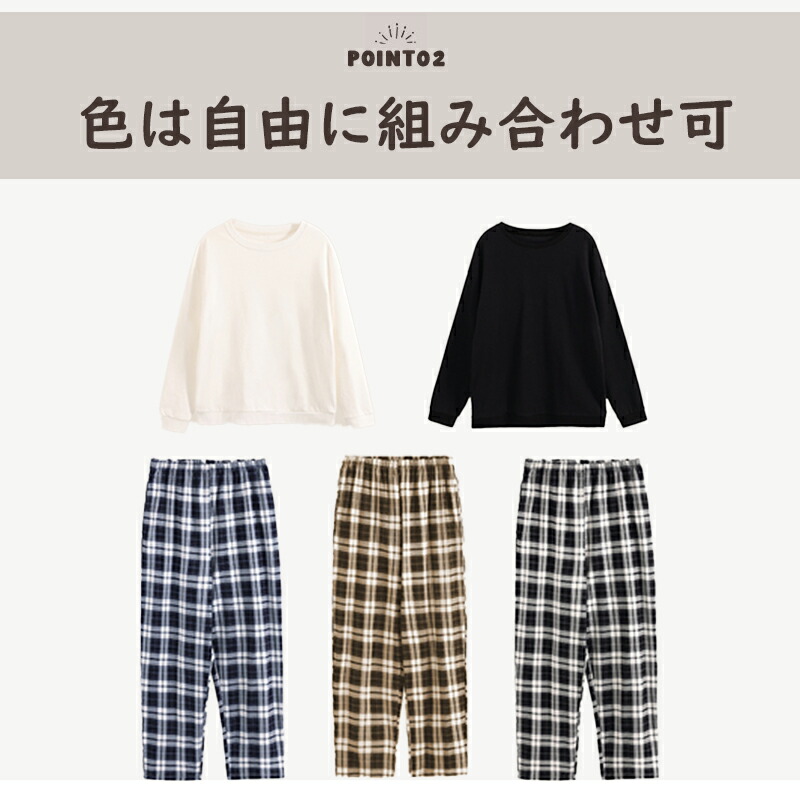 ペア パジャマ ルームウェア 綿100 ベージュ ブラック ネービーチェック柄 ブラウンチェック柄 ブラックチェック柄