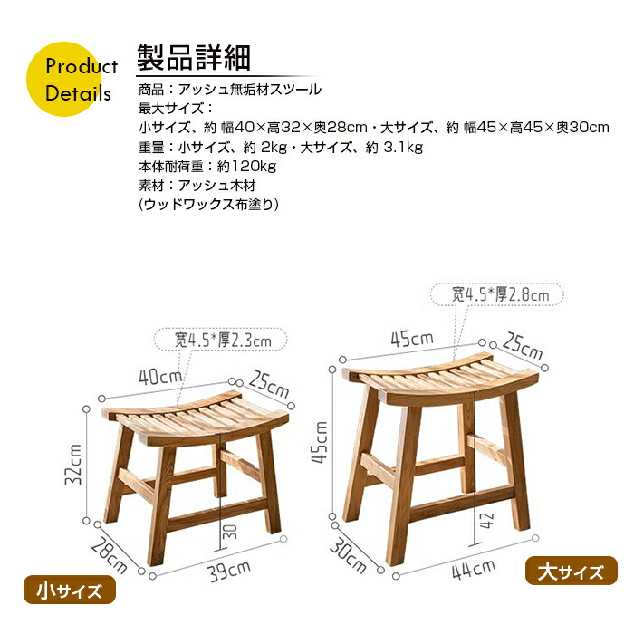 アッシュウッド無垢材スツール サイズ 大サイズ 小サイズ