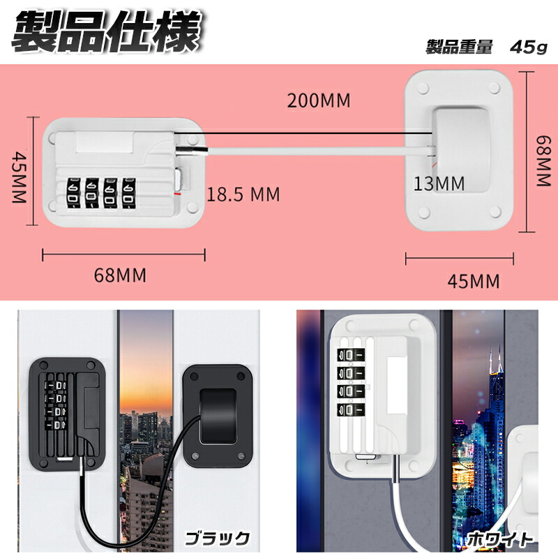 窓・引き戸用 ダイヤルワイヤーロック ベビー セーフティーグッズ 戸口ロック ストッパー 続々登場 ホワイト ブラック