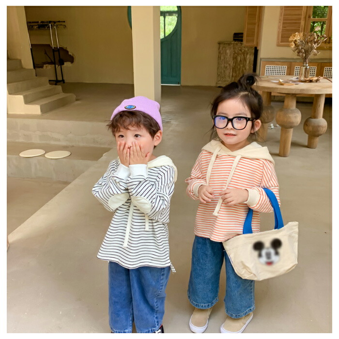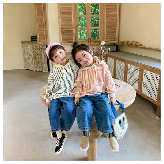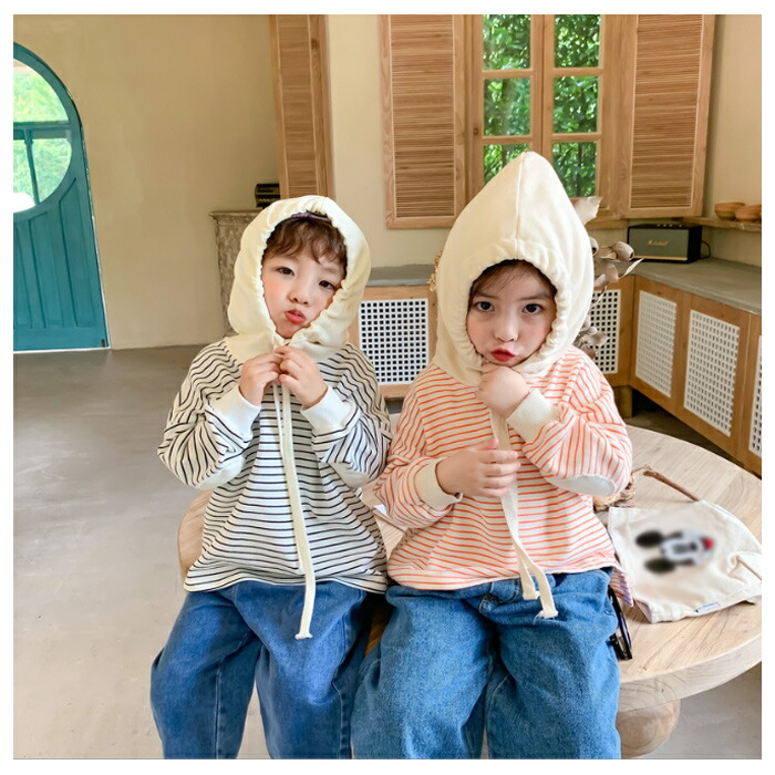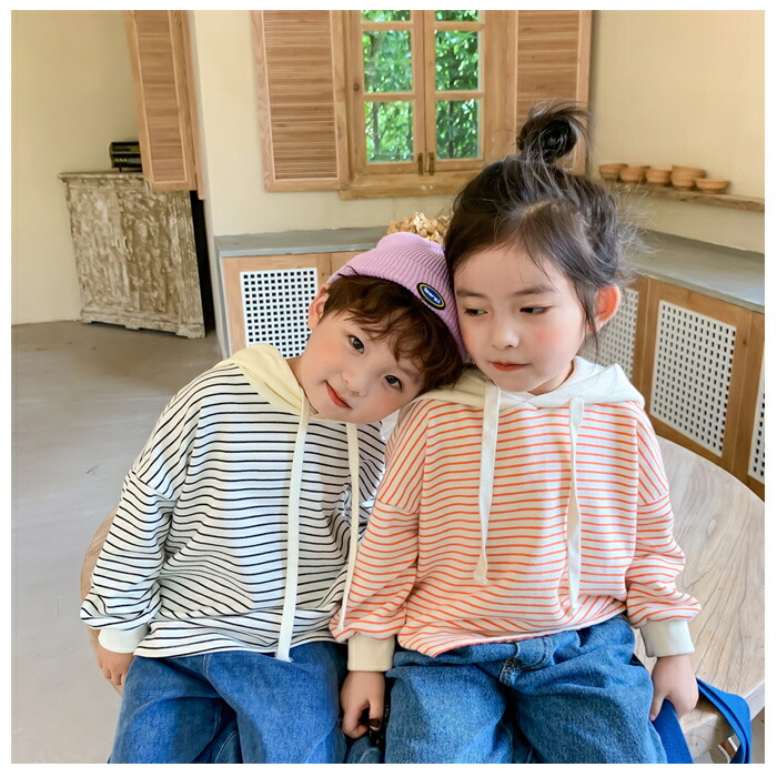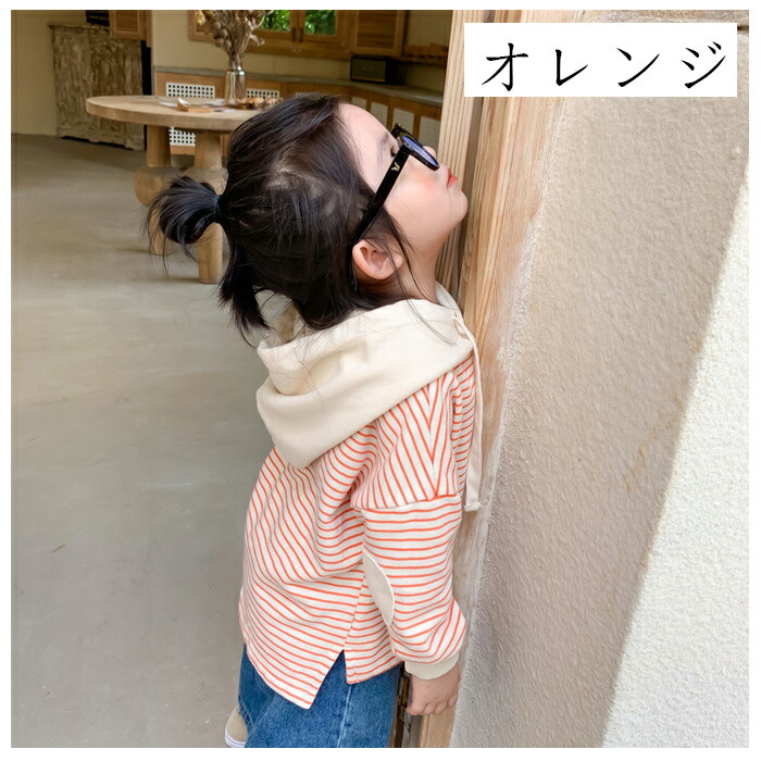 子供服 ストライプ柄 パーカー 80 キッズ ベビー マタニティ 早い者勝ち オレンジ ブラック 80 90 100 110 120 130