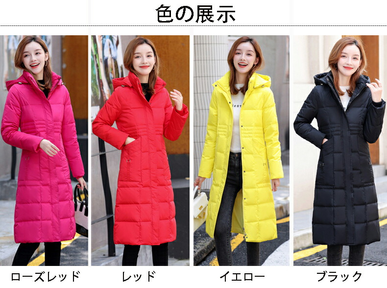 ダウンジャケット ロング丈 ダウンコー コート ジャケット 早い者勝ち イエロー ブラック レッド ローズレッド S M L XL 2XL 3XL 4XL