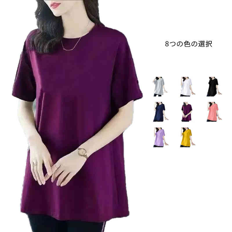半袖Tシャツ 夏 レディース ロング レディースファッション 特集 ライトグレー ホワイト ブラック ネイビー パープル ピンク ラベンダー イエロー S M L XL 2XL 3XL