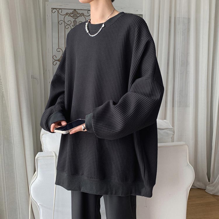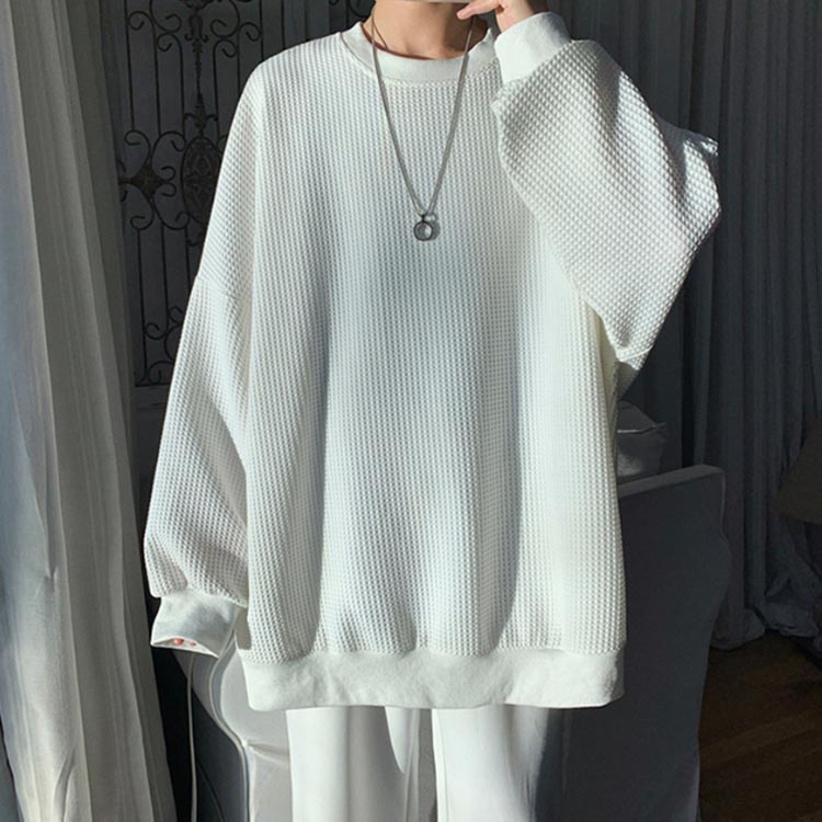 ロンT 長袖 メンズ ゆったり ワッフ メンズファッション 人気 ブラック ホワイト グレー M L XL 2XL