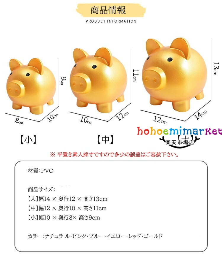 貯金箱 ぶた 豚の貯金箱 かわいい 小 ゴールド【2個】 ブルー【2個】 ピンク【2個】 ナチュラ ル【2個】 イエロー【2個】 レッド【2個】 小 中 大