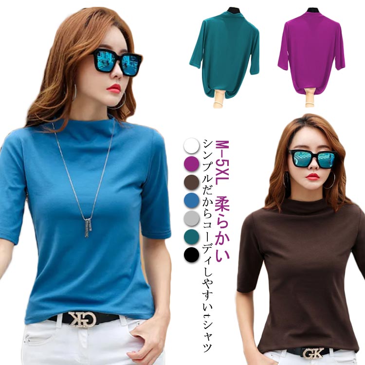 秋冬 薄手 カットソー 半袖 レディー レディースファッション 通販 ブラック ホワイト コーヒー ブルー ライトグレー パープル グリーン M L XL 2XL 3XL 4XL 5XL