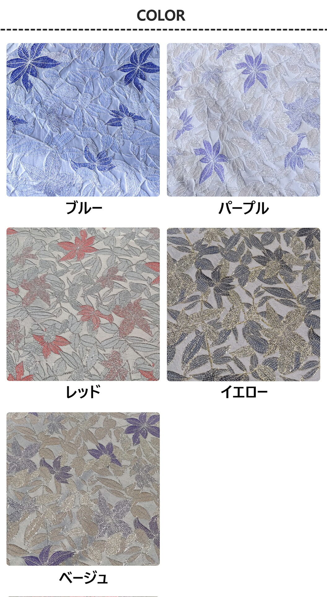 150cm幅 長さ95cm+95cm ジャカード生地 生地 布 布地 ぬの きじ 色織り 葉柄 紅葉柄 ブルー レッド イエロー ベージュ パープル
