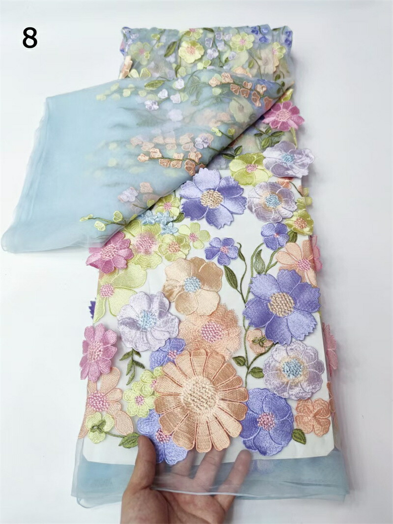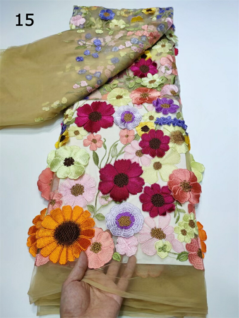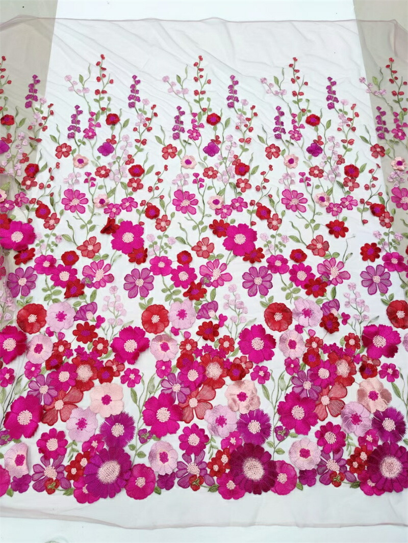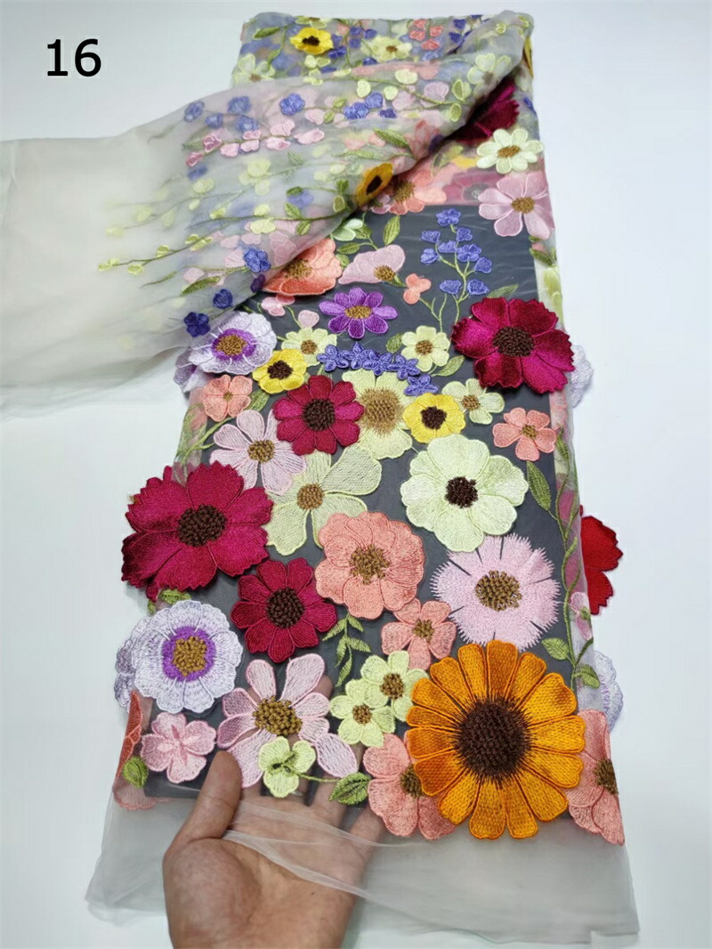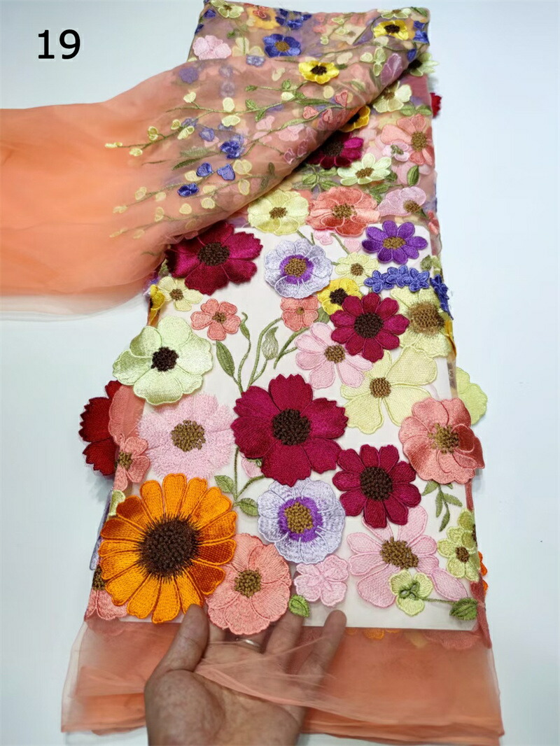 18色 130cm幅 85cm単位 生地 布 布地 刺繍 花柄 植物柄 立体 3D 薄手 メッシュ カラフル 透明