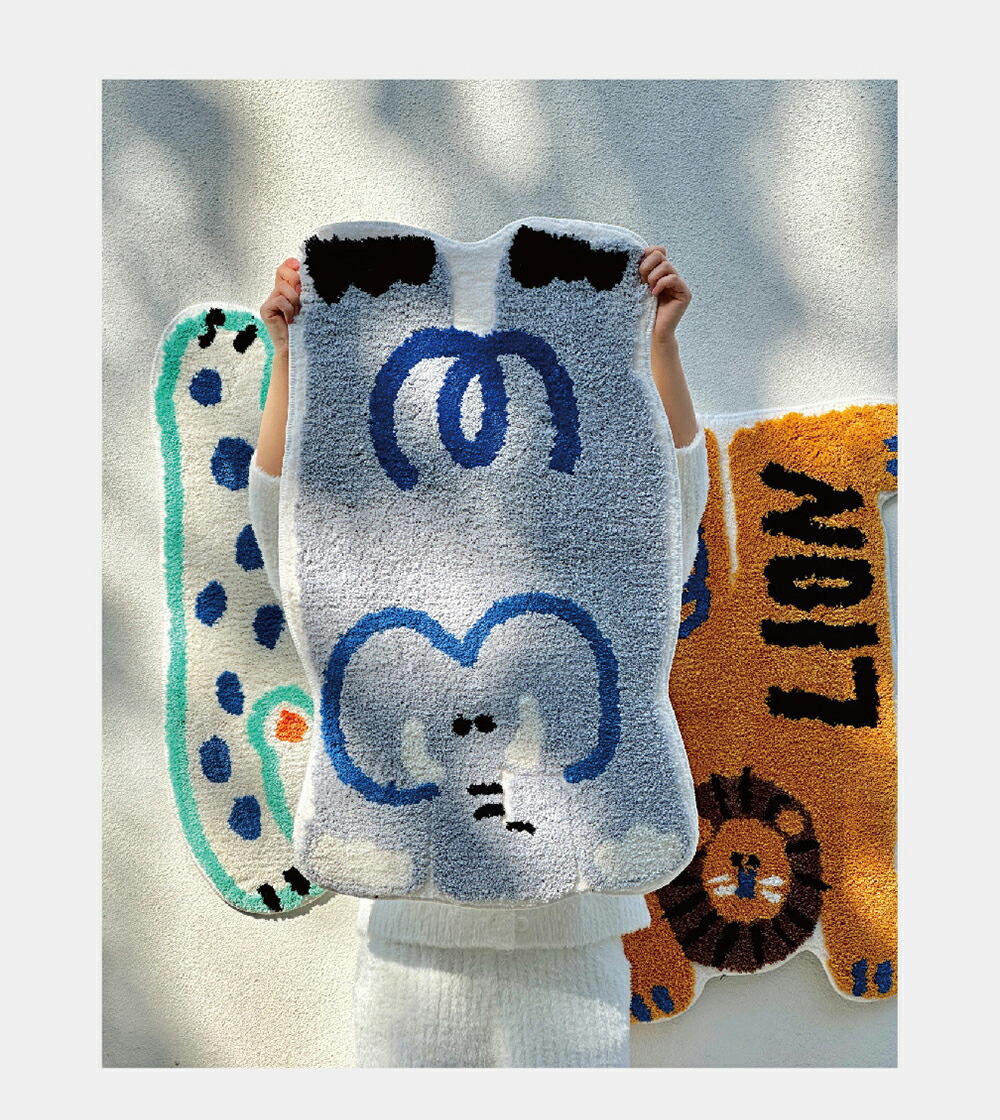 カーペット フロックカーペット 可愛い 猫49x90cm 象54x90cm 鰐43x100cm 獅子66x90cm 北極熊50x90cm 河馬47x90cm