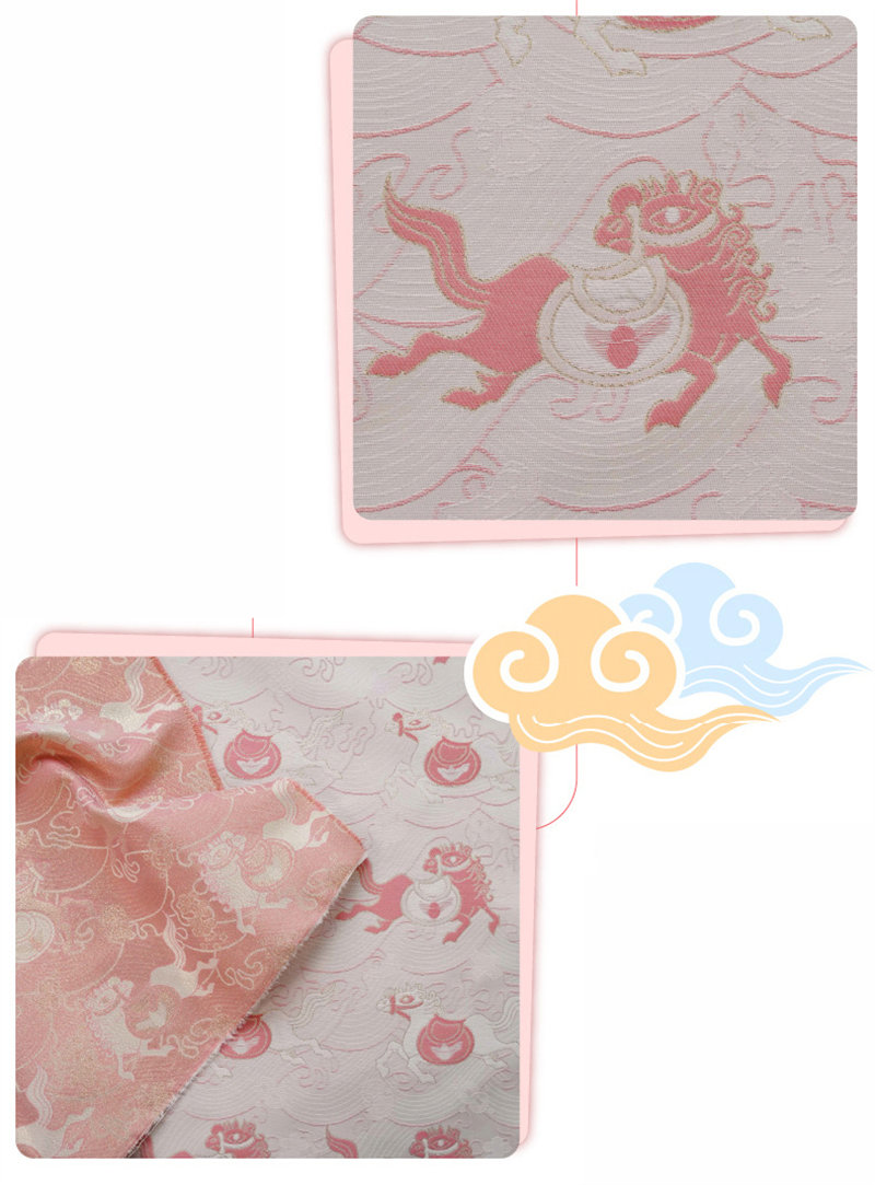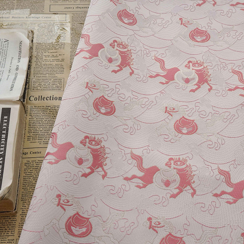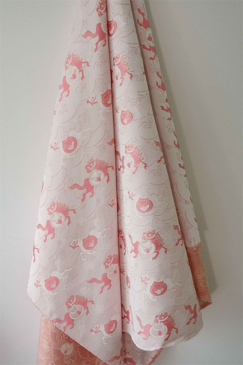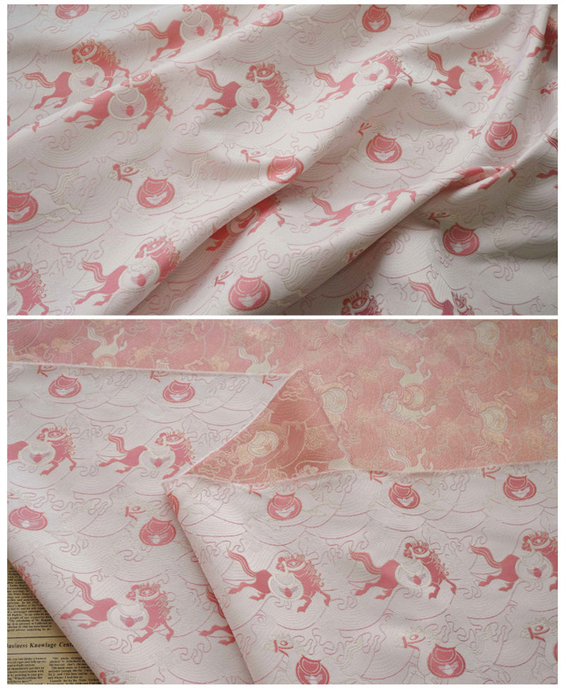 145cm幅 90cm単位 生地 布 布地 きじ ジャカード生地 色織り コイン柄 波柄 ピンク 馬柄