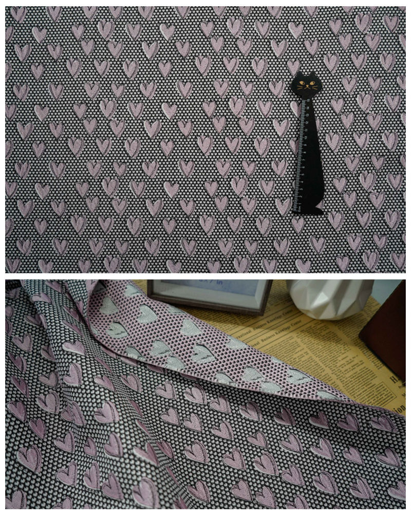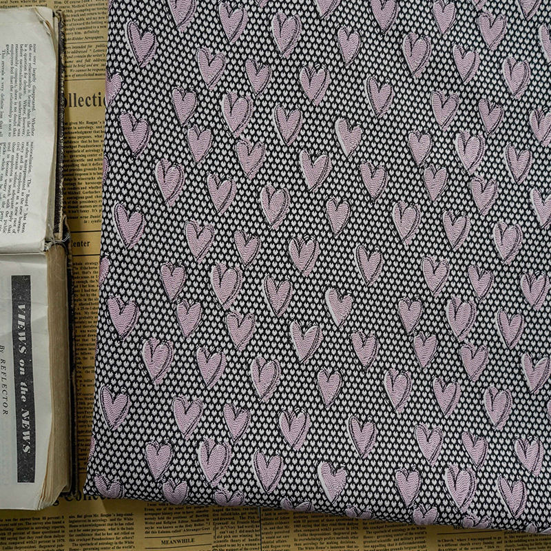 140cm幅 90cm単位 生地 布 布地 きじ ジャカード生地 色織り ドット柄 黒 ピンク ハート柄