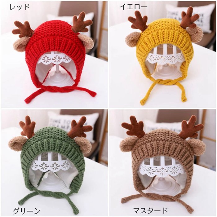 耳付き 帽子 子供 クリスマスイベンド キッズ ベビー マタニティ 早い者勝ち レッド イエロー グリーン マスタード ピンク