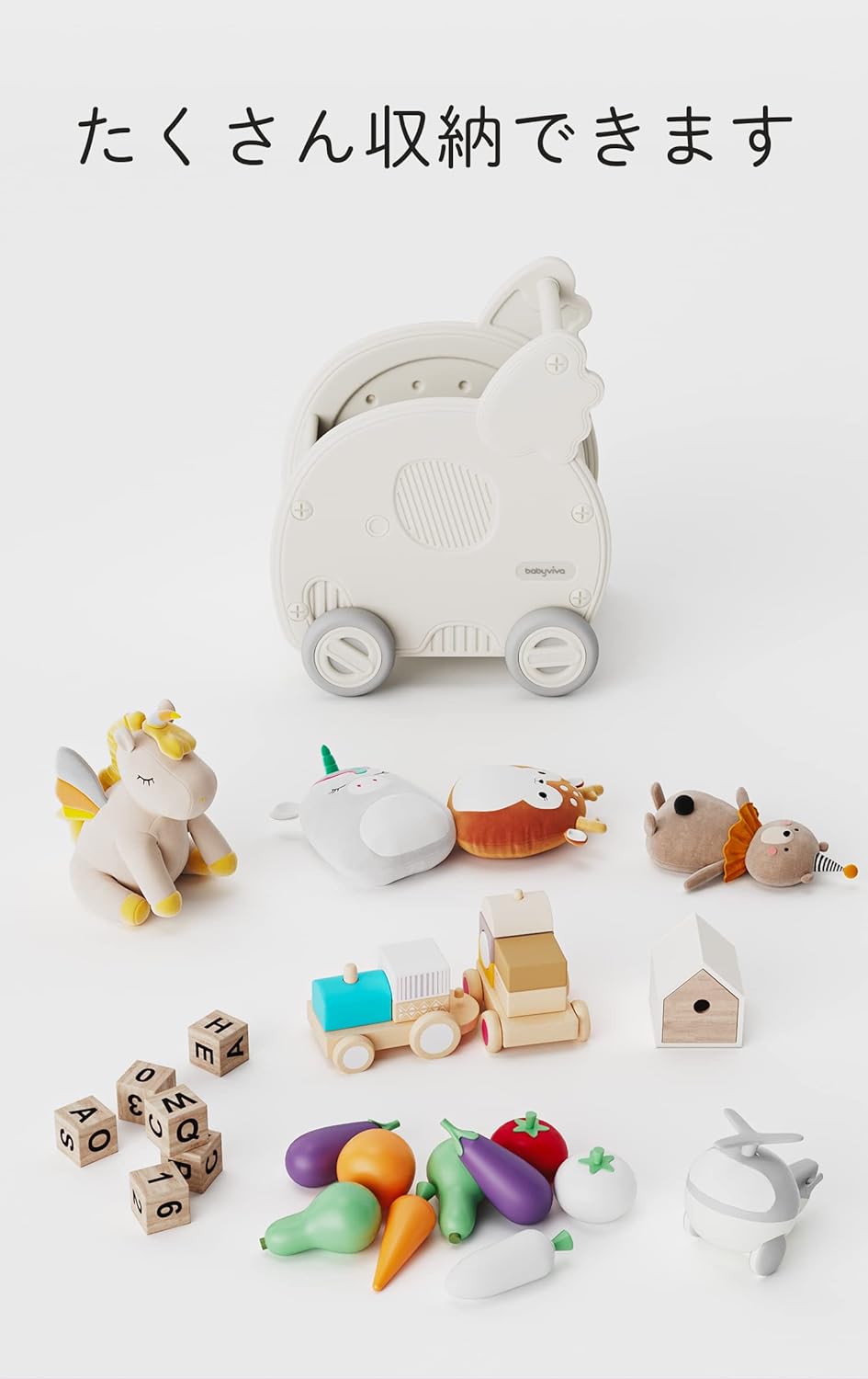モチワゴン おもちゃ 収納箱 ボックス おもちゃ ベビー向けおもちゃ 手押し車 カタカタ 豊富 イエロー グリーン ホワイト