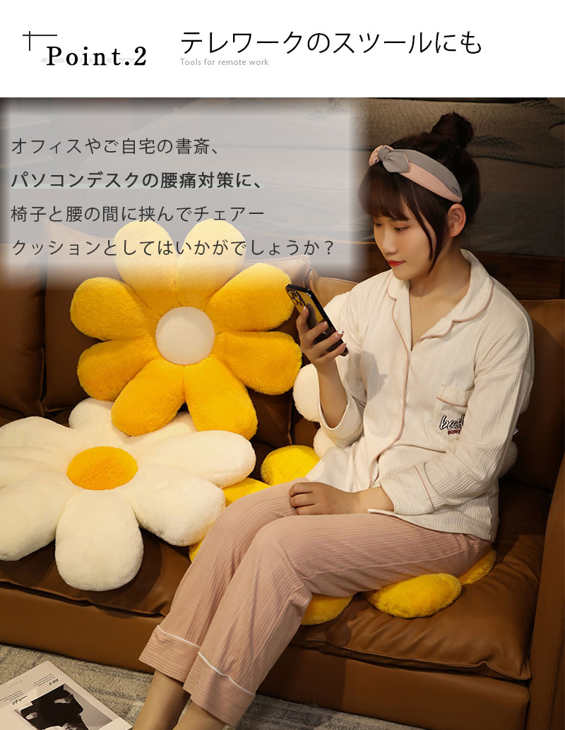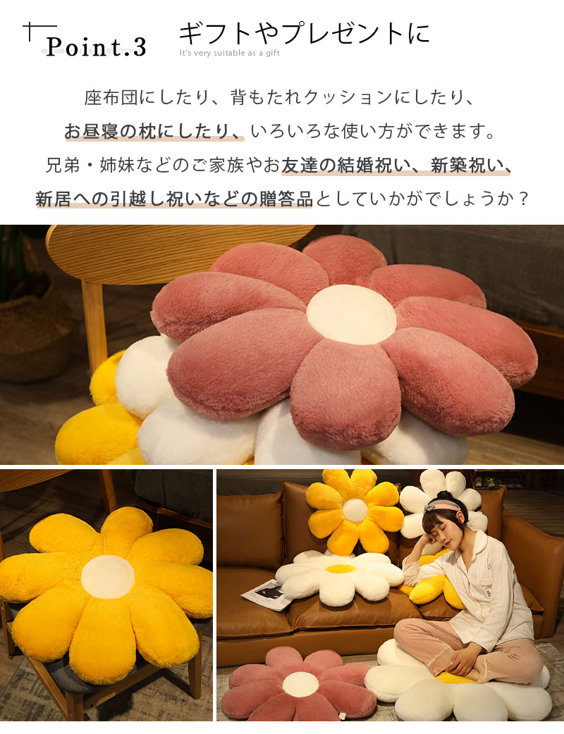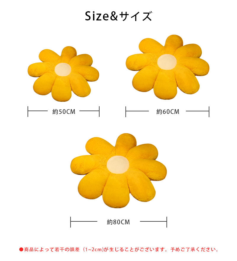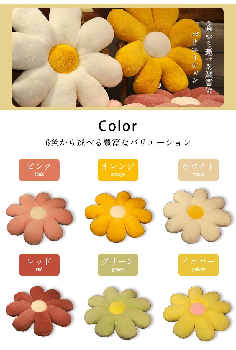 花型フラワー フラワークッション 座布 ピンク オレンジ ホワイト レッド グリーン イエロー 50cm 60cm 80cm