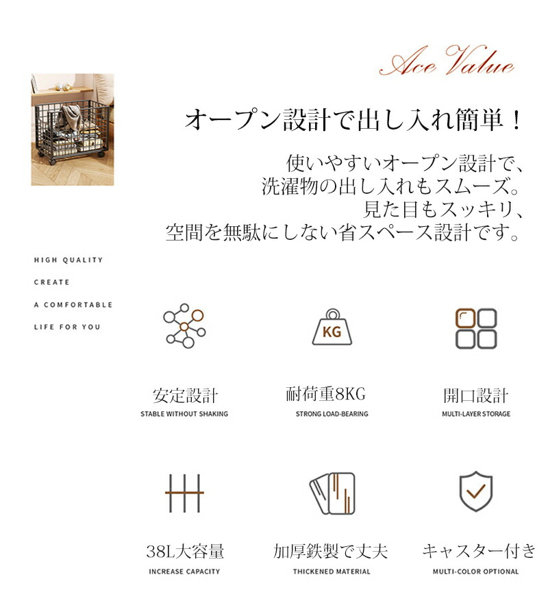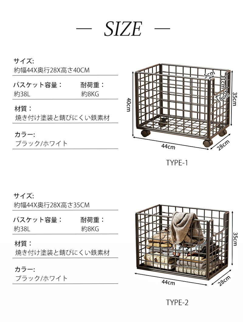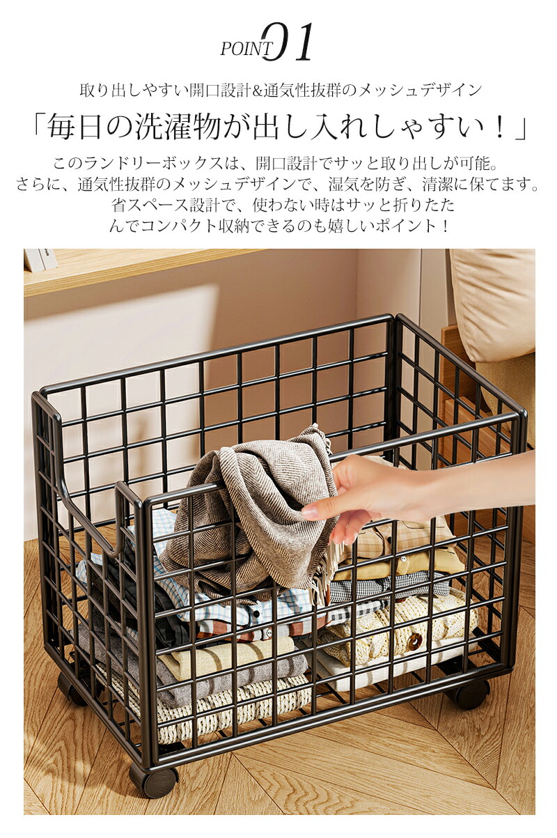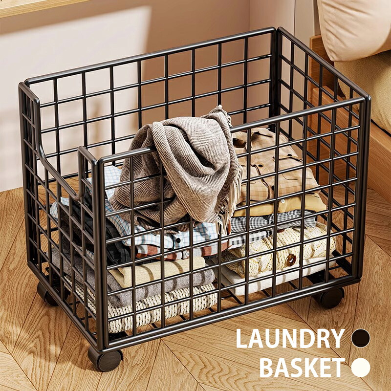 [ ランドリーバスケット キャスター付 ブラック ホワイト キャスターあり キャスターなし