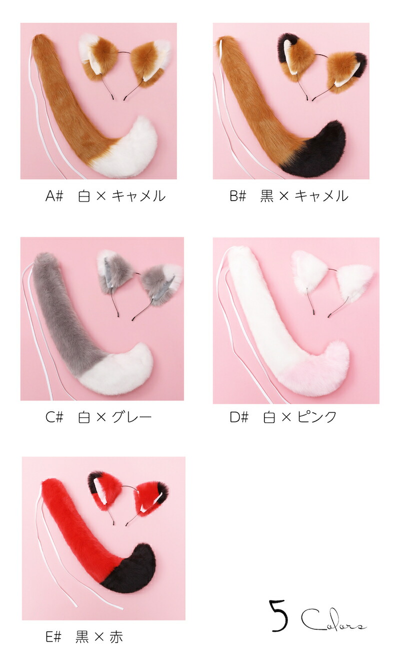 コスプレ道具 狐耳&尻尾セット キツネ ホビー 新登場! A# 白×キャメル B# 黒×キャメル C# 白×グレー D# 白×ピンク E# 黒×赤