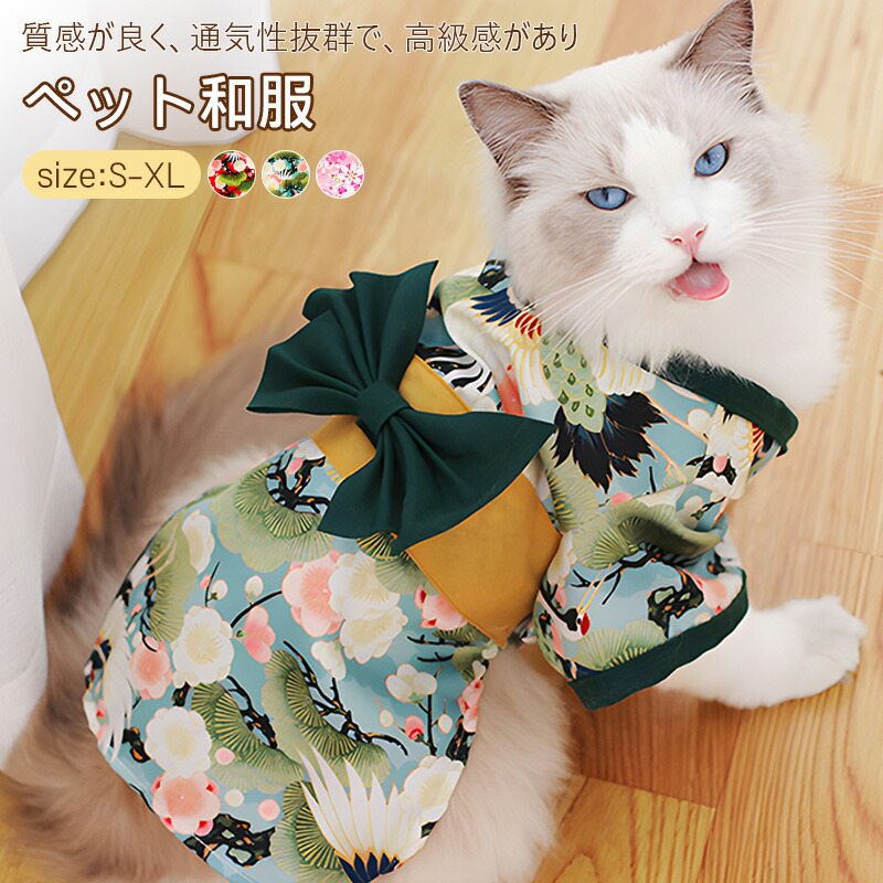 SNS映え ペット用浴衣 犬 猫 浴衣 レッド グリーン ピンク S M L XL
