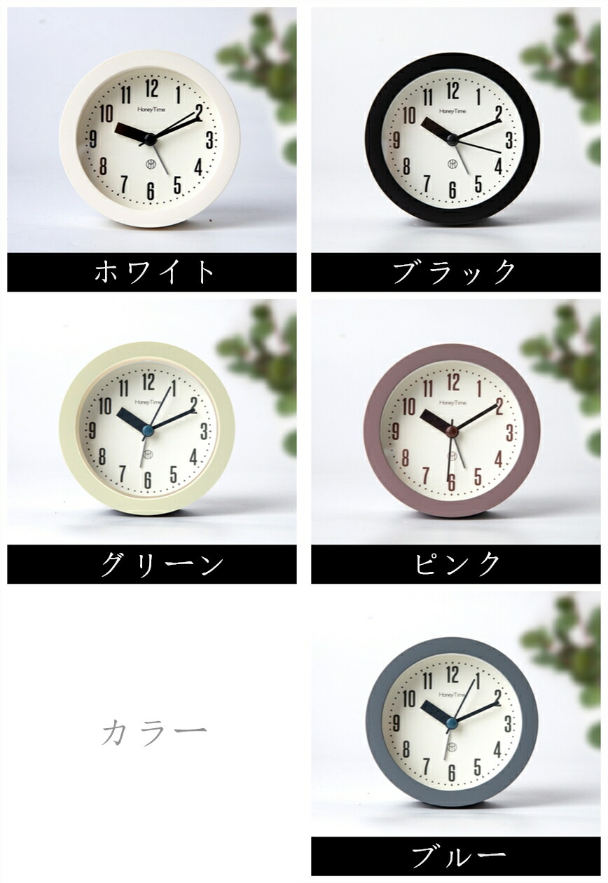 置き時計 目覚まし時計 クロック 見や ホワイト ブラック グリーン ピンク ブルー