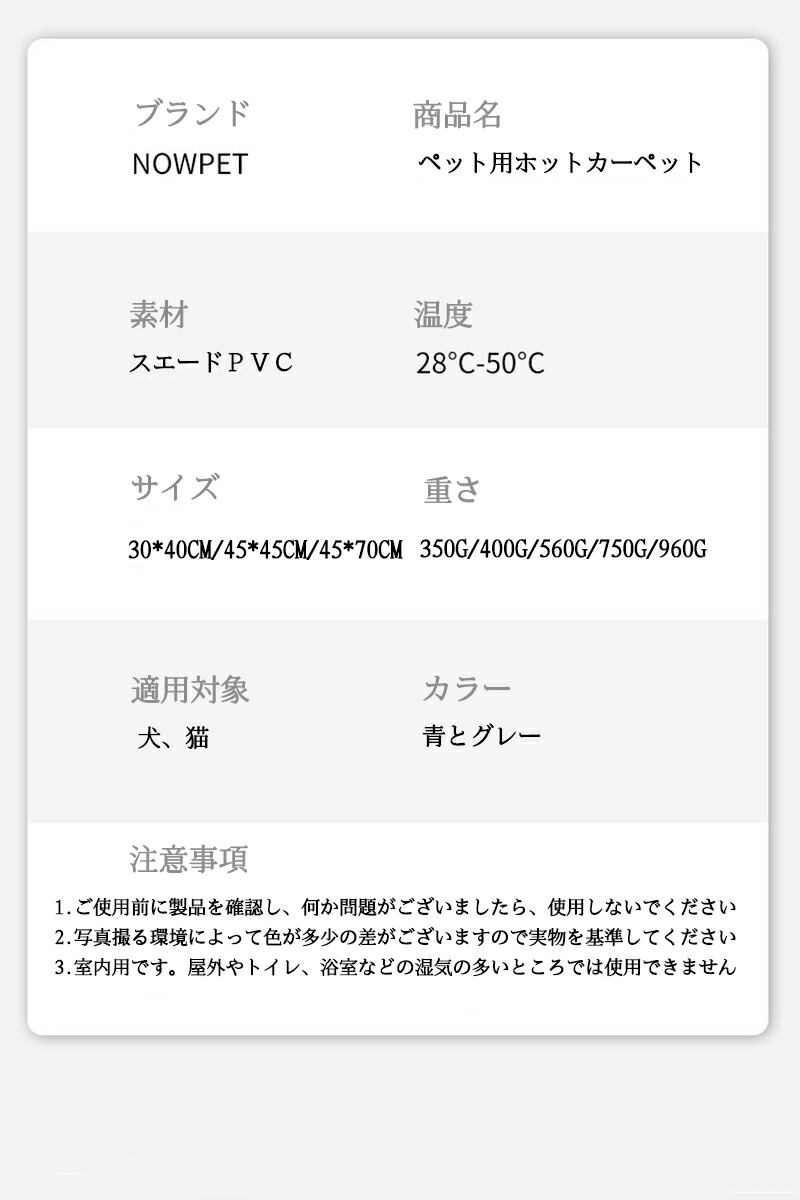 ペット用ホットカーペット ペットマット ペット ペットグッズ 特集 青 グレー 30*40 45*45 45*70 60*90