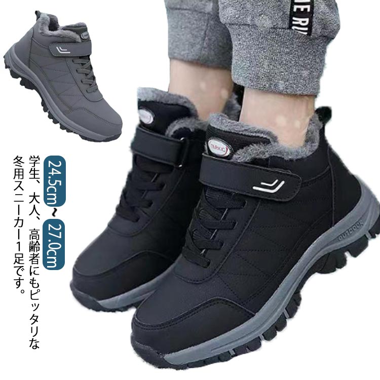 メンズ スニーカー 冬用靴 ボアスニー メンズ靴 スニーカー 豊富 グレー ブラック 39(245mm) 40(250mm) 41(255mm) 42(260mm) 43(265mm) 44(270mm)