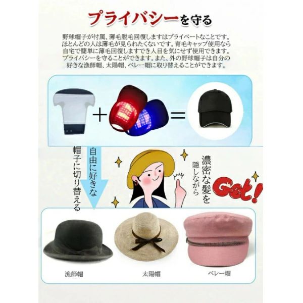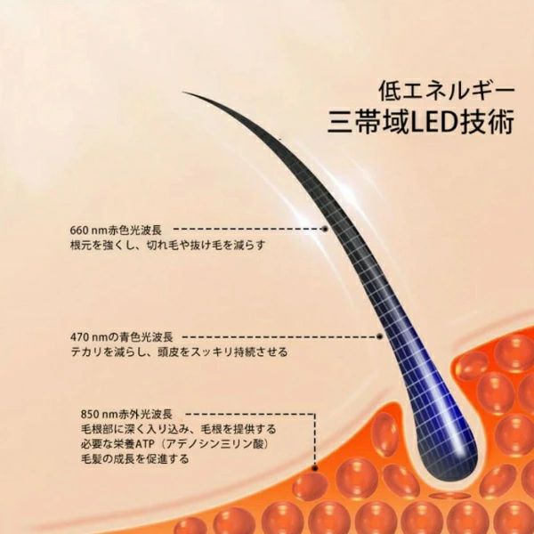 【内容】育毛ランプ、キャップ、USB-C充電ケーブル、キャップケース