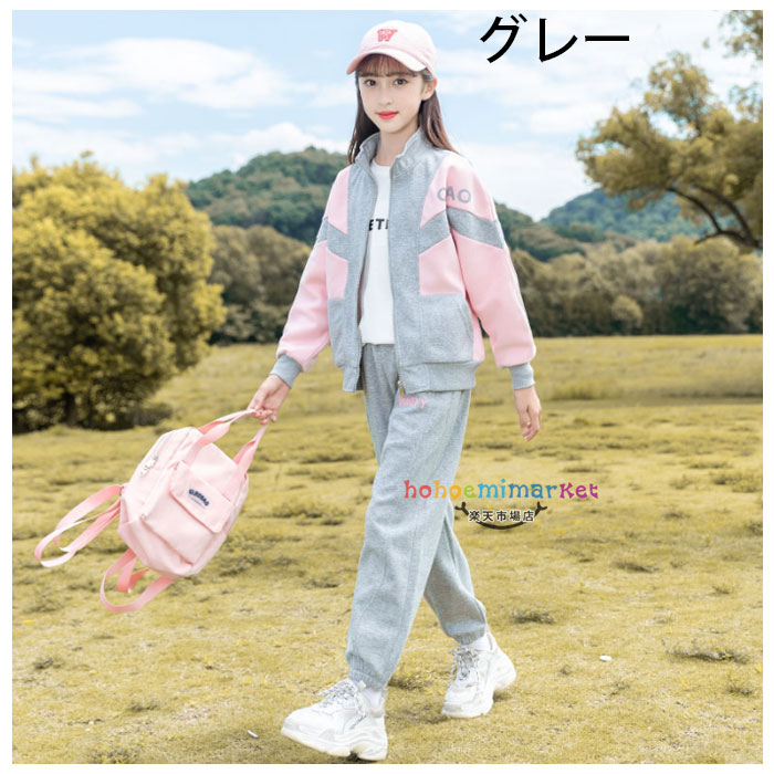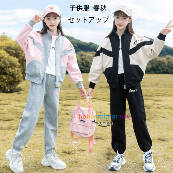 韓国子供服 秋服 女の子 セットアップ キッズ スーツ カジュアルセットアップ カジュアルパンツセット 早い者勝ち ブラック グレー 110 120 130 140 150 160 170
